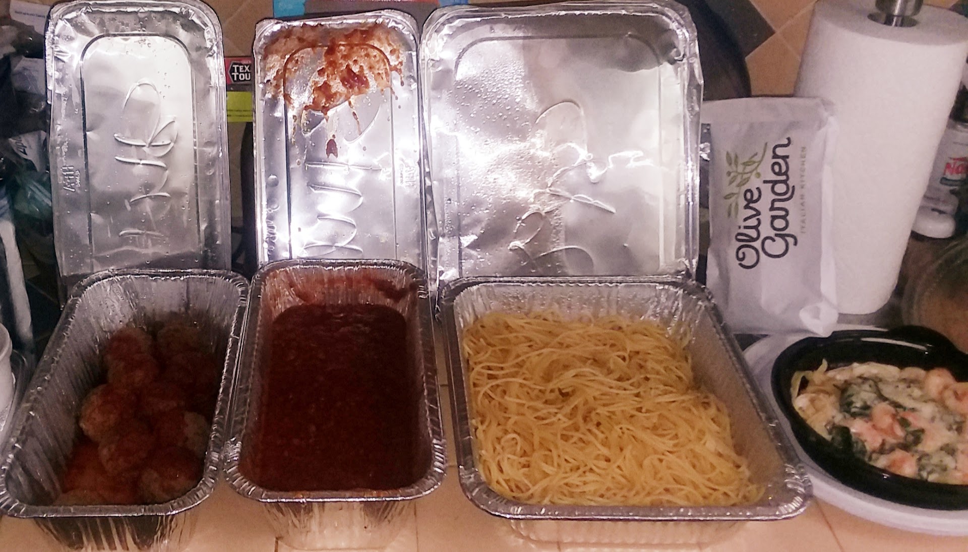 Read moreSorry Guys im only giving 3 stars and really 2 are because of our Waiter. Now let me start... Walked in was immiediatly seated. Waiter comes out talks us thru drink specials i ordered a green apple sangria and appitizer sample of lasagna frita and stuffed mushrooms (pay attention) with a side of cofee (not a big drinker) Waiter comes with my drink and breadsticks i order the new chicken garboni Hubby orders lasangna of course and for son pizza and french fries. Waiter tries to persuad me to order the scampi i decline politely( just wait) ..... Now he leaves... I taste my drink now remember im not a drinker which means i can taste any alcohol in a drink even the lightest of hints....i take another sip ...i TASTE NOTHING TO THE POINT I LITERALLY CHUG THROUGH STRAW WHOLE GLASS ... NOTHING PERIOD. 6.00 WASTED. I JUST LET IT GO WHATEVER. But then out comes appetizers lasangna frita is hot i mean fresh just hopped on the plate...... Mushrooms my favorite i cut and taste mushrooms still hard and barely lukewarm i have my son amd hubby taste.... Same REACTION AND I SAID NOTHING BUT THEY BOTH DID . so i feel and look at plate plate is cold and cheese is burnt black to plate but cheese on top of mushrooms whiter then white ( obvious reheat) so i ask when waiter returns are these made fresh??? He says they are supposed to be i say they are cold .... I send them back to be remade.... CORRECTLY. HE OBLIGED..(GREAT GUY) Now entrees come out, hubby has a child size lasagna on his plate but says its hot whatever and eats... Sons food good (duh frozen pizza and fries cant really mess that up) now mine....I WISH I WOULD HAVE LISTIONED TO HIM. I DONT KNOW WHAT WAS IN THE SAUCE BUT IT WAS EITHER WAY TOO MUCH FOR A LIGHT PASTA DISH OR SOMETHING WASNT RIGHT IT HAD A AFTERTASTE OF SOME KIND OF EARTHY MOLDY TASTE ... BUT DECIDE BEFORE THEY SPIT IN MY FOOD LET IT GO.... WAITER COMES OUT AMD ACTUALLY AT TABLE MAKES MY SON A BALLOON ANIMAL ....LIKE MAKES MY SONS DAY HES STILL CARRYING IT AROUND AND EVEN AFTER HE ACCIDENTLY UNTWISTED LEG WAITER STILL REDID IT WITH A SMILE NOW HE ISNT PAID ENOUGH ... I love olive garden but please piss test your chef or hire one with better training i can go to olive garden on 45 near spring and get much MUCH BETTER FOOD AND ADULT SIZE PORTIONS TO MATCH... ITS REALLY SAD THAT SUCH A RICH NEIGHBORHOOD HAS TO PAY OUTRAGEOUS AMOUNTS TO BE THERE AND GET SUB PAR FOOD AND DRINKS... IN SHORT .... DO NOT RECCOMEND THIS ESTABLISHMENT... SORRY GUYS AND TO WAITER RELOCATE TO A BRANCH THAT WILL MATCH YOUR LEVEL...