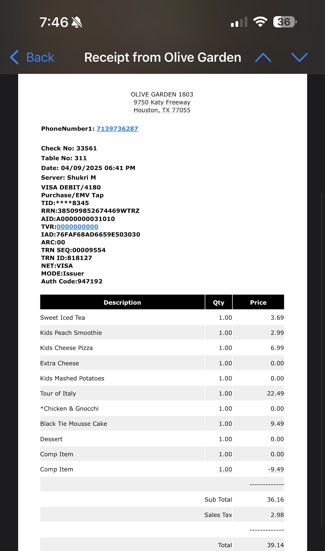 In conclusion, my experience at Olive Garden was elevated to new heights thanks to the outstanding service provided by Jamil. His professionalism, attentiveness, and genuine care for his customers truly made a difference in our dining experience. Without a doubt, I highly recommend Olive Garden, along with the exceptional service of Jamil, for a memorable dining experience. I can't wait to return and enjoy another delightful meal with Jamil's...