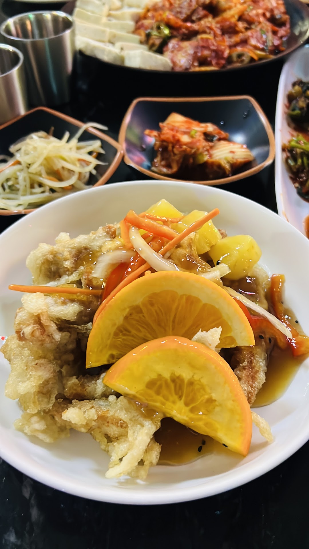 Among the standout dishes, the sour pork reigns supreme, boasting a perfect balance of crispiness and a clean, flavorful sweet-and-sour sauce that sets it apart as one of the best in town. The restaurant also impresses with its selection of authentic Korean-style kimchi, including the intriguing green onion and plum varieties, adding a burst of flavor to the meal.