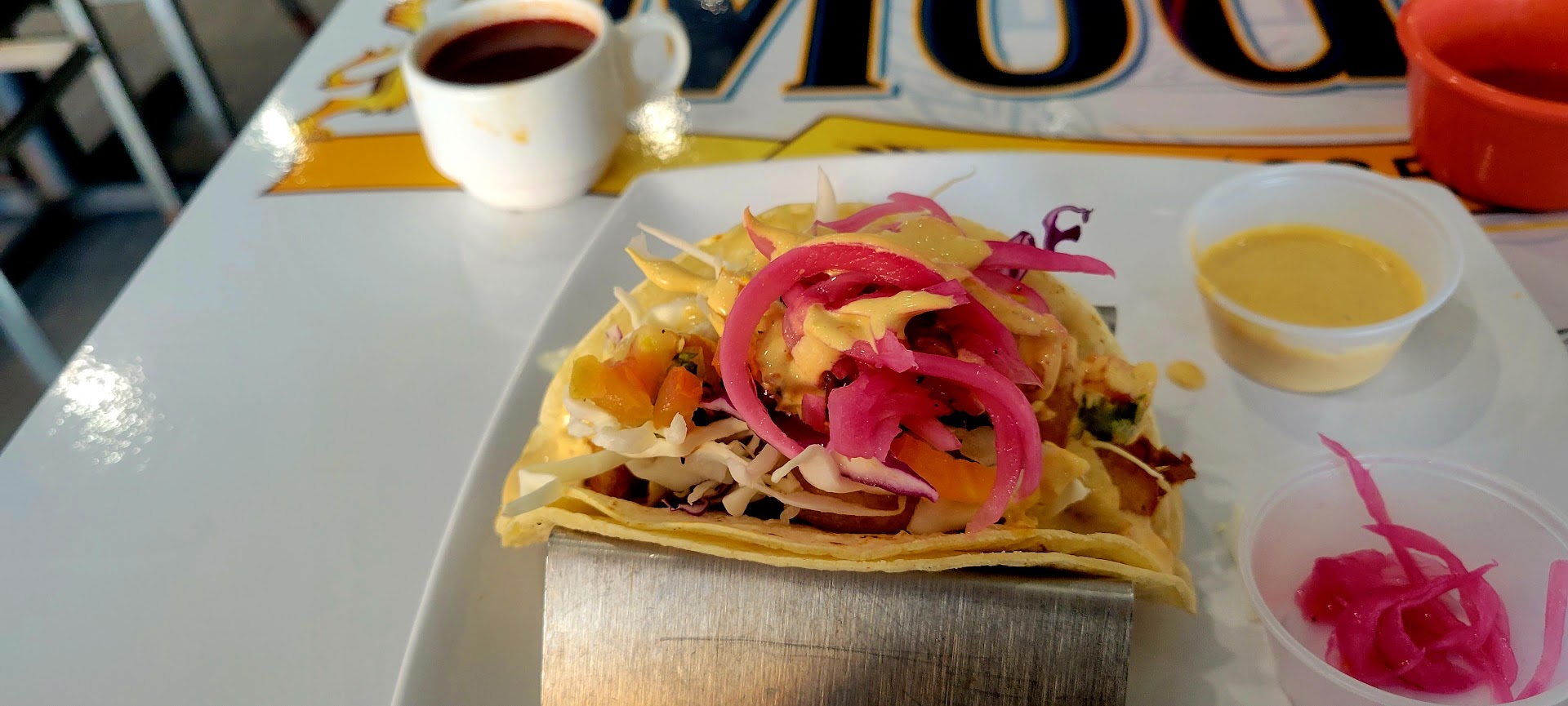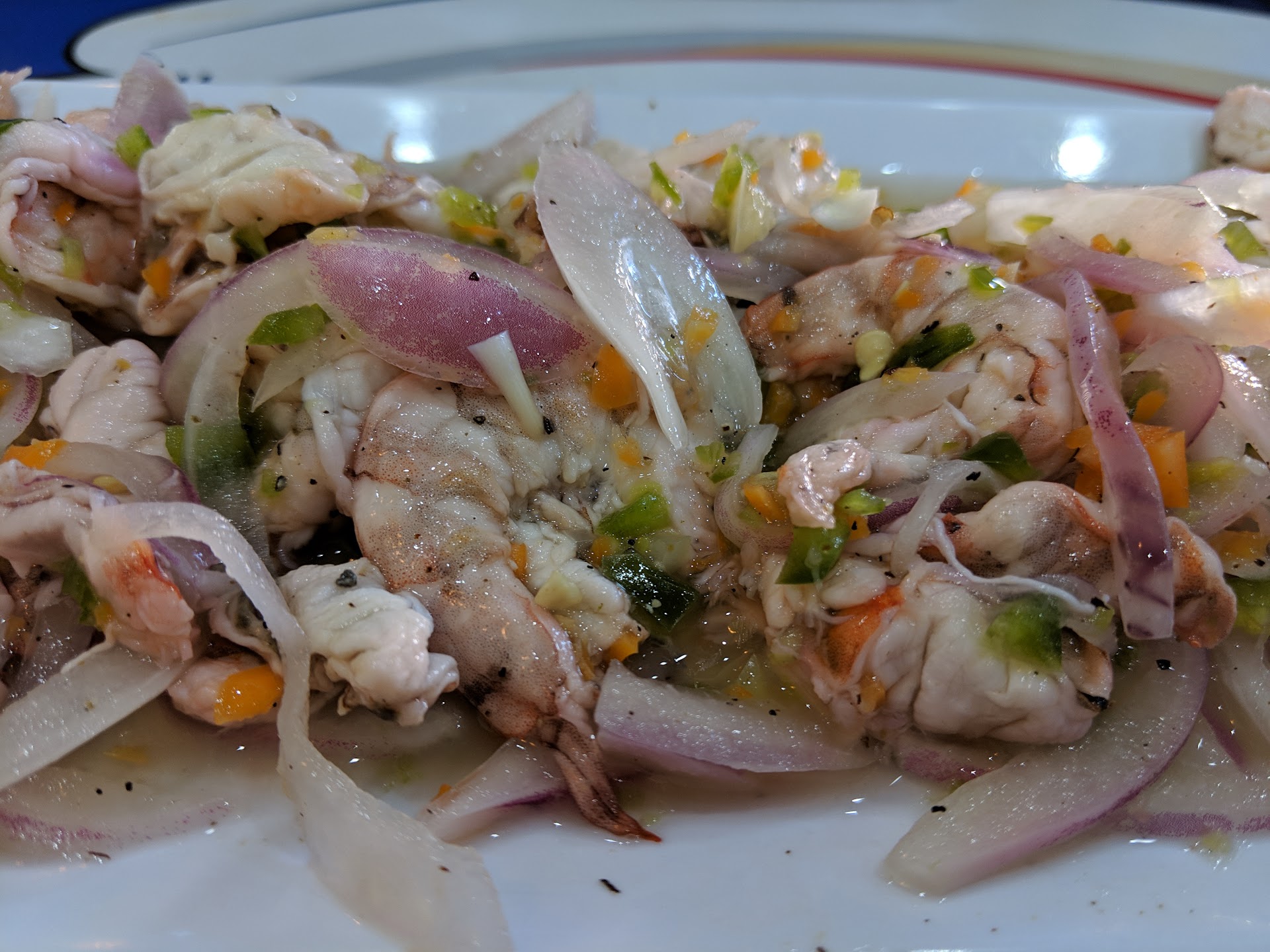 Saw this place on Instagram Saw a plate they posted as the āSeafood Samplerā However the waitress said that was not offered That those were 3 separate plates So my daughter said Iāll just have a shrimp tostada but not spicy so she brings out only shrimp and avocado š„ as shown in pic They did NOT have an option of chopped onion tomatoes cilantro with it because itās made with poco de Gallo is what she said I ordered the Shrimp in the green sauce The waiter pushed the cucumbers š„ back into my plate with her bare hand š in my face! I wonder what they do in the back! All the shrimp were raw still I had to wait for them to cook in the lemon My daughters tostada came out first then the empanadas that we ordered with out drinks Then my plate then the quesadilla then later the parrillada then 10 min later the tortillas! The food didnāt come out together and about 5-10 min apart! Everything was wrong My boyfriend finished his water and all the waiters were just standing not doing anything we couldnāt find ours Eventually she came around I really do not recommend it at all 1 star āļø is me being nice as well as my tip! Avoid this...
