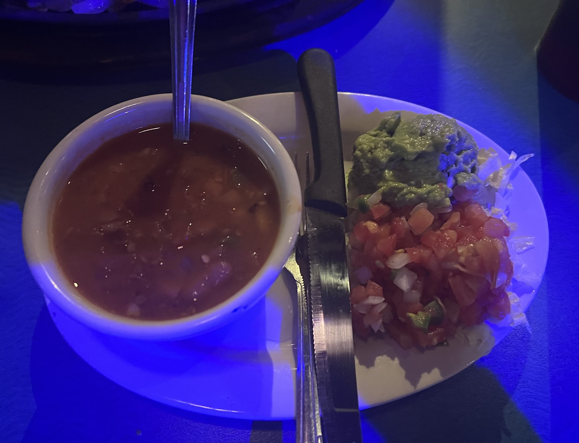 First time at this restaurant, nice place, good ambiance (a little bit loud in my opinion). lots of options to choose from the menu, but very challenging to read with the dimmed light at my table. Ordered the shrimp and fish soup, but it had a strong taste of tomato paste (even though, the other fresh ingredients the canned tomato flavor was noticeable) the soup came with a side of special rice which was very good. Also, tried the parrillada Beef and shrimp. It came with two sides, guacamole (good) and the charros beans which had the same processed tomato flavor as the soup. Service was average