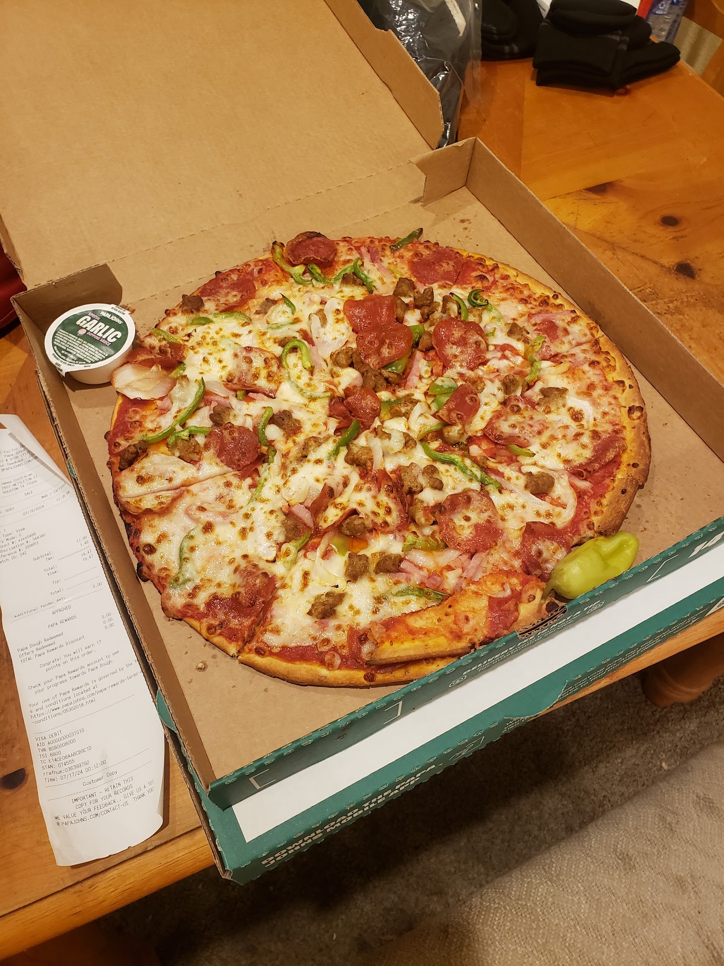My neighborhood Pappa John's is on Old Spanish Trail in Houston,TX. After teaching summer school today ( a rambunctious group of amazing high school students), I looked forward to ending a long week with a well deserved pizza. The young lady who took my order later stated that she was the manager. No receipt and she didn't even ask what crust I wanted. After 5 minutes, I asked her what was the New York crust. She stated that it was like the picture and it was too late to change my mind, assuming that I would. Having worked at Domino's at 17 (ages ago), I know that asking the type of crust is customary. Moreover, all places usually do. After explaining this, she stated that "she never asks". "When the pizza was ready, I respectfully asked for the general manager's name. She wrote "Kim" on a paper, wiped her nose, and placed it on my food. I usually do not complain, but now that I home, the pizza is going in the trash. If someone wipes their noses in my presence, imagine what she did when I returned to my car. YUCK!!!