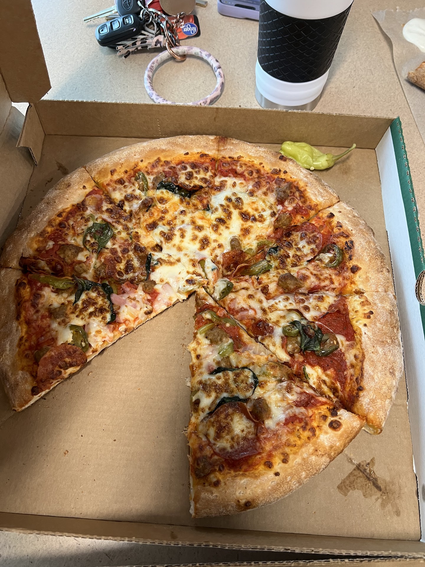 Read moreThe location on West Fuqua messed up my order twice and I was getting tired of it, so I decided to try this location out. Let me remind you that this was my FIRST time ordering from this location. So my mom ordered pizza over the phone for me at this location. She went to go pick up the pizza (I wasn't there when she picked it up because I had to take care of my daughter) and she asked the manager if he put extra cheese. He said yes but my mom knew he didn't so being the nice person she is, she trusted them when they said they put extra cheese and brought the pizza home. When I opened the box I knew right away that there was no extra cheese (trust me, I can tell the difference, and I'll post pictures too). I called them and told them that they messed up my order so the person who answered the phone gave it to the manager. Jaime (the manager) was very rude when I spoke to him. I told him about my order and he rudely snapped back and said "But your mom said the pizza was okay, so you're saying it's okay but it's not okay?" What kind of a question is that? There was no sympathy or profession in his voice. And then he rudely asked "Okay so what do you want me to do?" I asked for a refund and he said "Well I can't give you that but I can give you credit for a free pizza" and abruptly hung up afterwards. The fact that he didn't even bother to offer an option of how he could help solve my problem upset me and deservedly gets one star. So close to two stars, but if I hadn't asked for the refund, I wouldn't have been offered credit for...