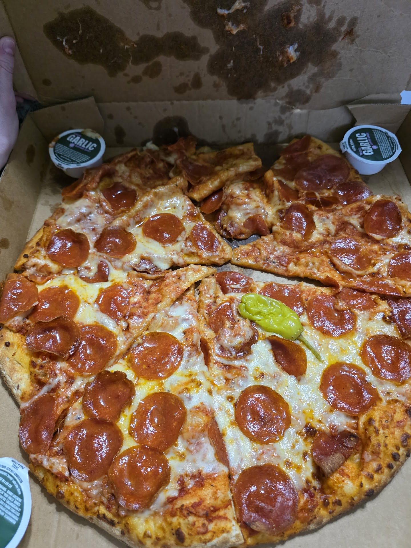 Episode 3: Let's give them one more try. Ordered BBQ wings. Got Buffalo wings. Ordered burger sauce. Got a cup of pizza sauce. Ordered a pizza. Seems like they might have actually managed to get that one correct, but I have yet to muster up the bravery to try it.