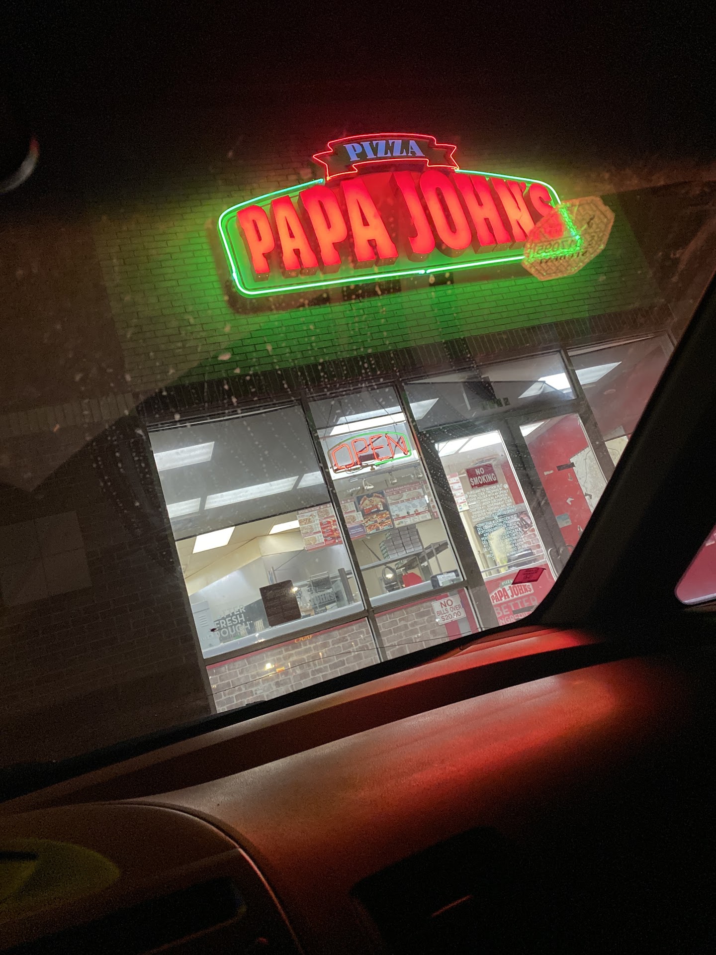 Read moreI'm not sure what the circumstances were at this location this Saturday night, but I'm pretty sure the pizza I just had delivered was the worst I've had from Papa John's. If anyone working this night cared just a little bit about the company, product, and reputation, they would have done quality checks. The only positive thing I could say about the pizza I ordered was the quantity of toppings. The taste of the crust I could only describe as being similar to cardboard. This was the predominant flavor throughout due to the lack of sauce that was only present towards the outer rim, not to mention a degree of being overcooked. The So the pizza was relatively dry and delivered cold. I've lived about a half of a mile from this location for about 4 years now. So based on observation, everytime I've ordered Carry Out, they've never been busy. I'm not going to speculate, but I will say my wife and I were very disappointed. It may just be this location, but it is definitely below the Papa John's standards. I thought to call the store and speak to the manager, but he/she are the reason this pizza failed. He/she probably would have offered my money back, but that wouldn't have fixed...