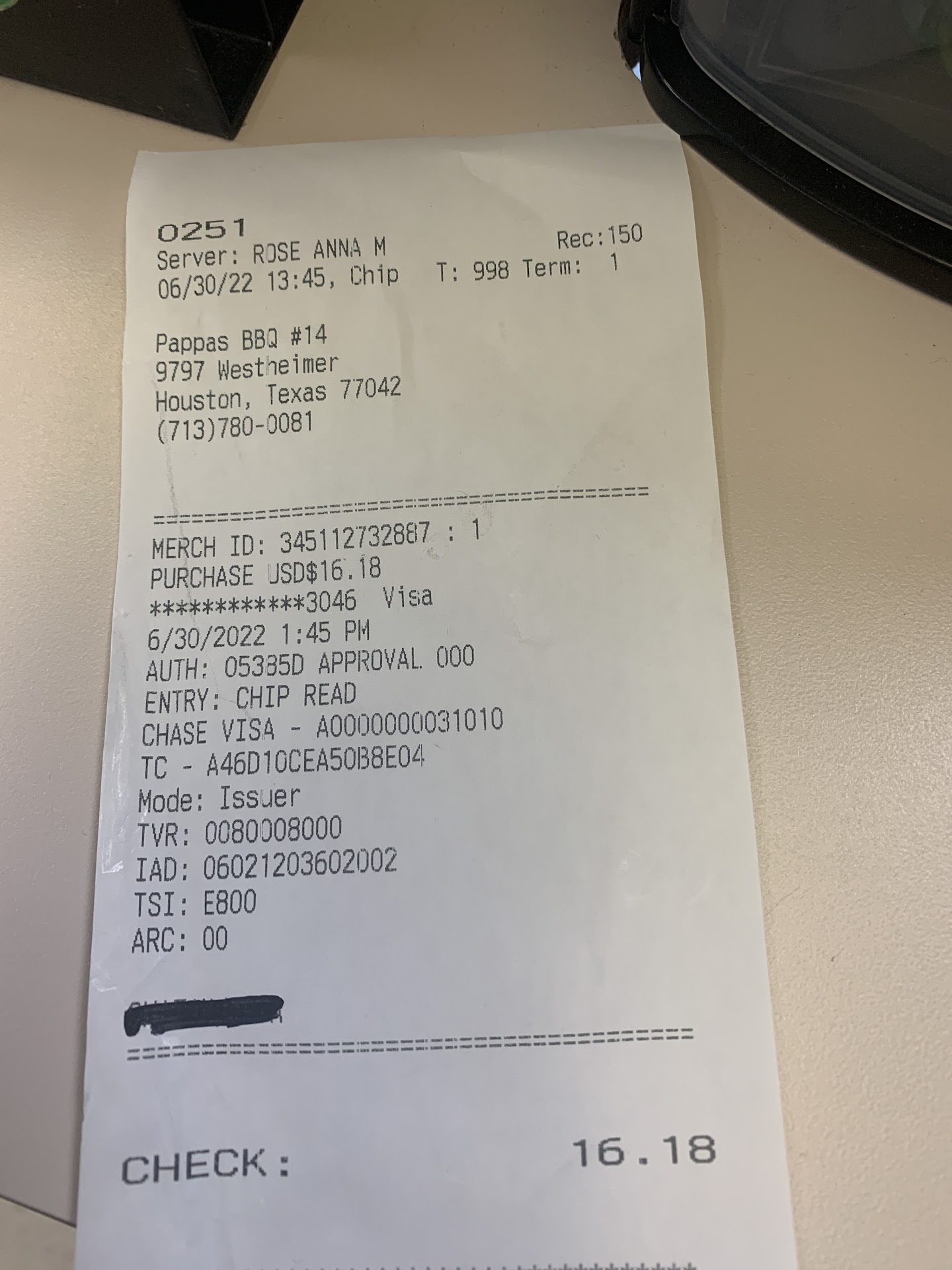 I go to Los Tios all the time down the street, 100% right every time. I go to McDonald's all the time down the street for breakfast, 100% right every time. My tea is always 50-50 and if I ask for butter and strawberry jelly it's in there for $6. What is your problem? What are you on? I was ordering for my neighbors. She fell and got hurt. Her son has terminal brain cancer. The husband's brother just died. I opened those bags and not enough sauce to brush your teeth with. Where are the pickles and onions? She said it comes with everything. Glad I didn't ask for jalapenos. When the inside was open with the fixings bar I could make sure it's going to have what I want for condiments. I don't need or want apologies, or discounts. I want you to get it right and that is a management issue not a worker thing. The FOOD is fantastic. But no more $100 orders from me if I have to be disappointed every single time. The unreliability isn't worth the price any more. It's almost like somebody is specializing in getting it wrong on purpose. Glad I didn't even ask for plasticware nor napkins, those weren't in there either? "Comes with everything", she said. It's a to go order, give me a break! Aren't forks and napkins something most people need to eat BBQ and sides out of a box? In my 20+ years of ordering to go at Pappasito's it has never been wrong, ever. You can go to Jack in the Box and get better service than Papas BBQ on S. Gessner.