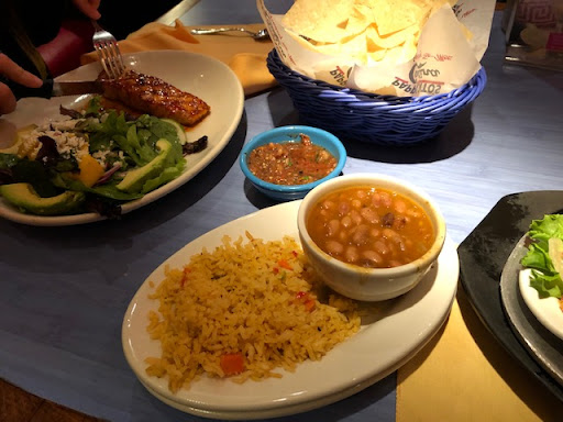 Given that this is a 1-star review, obviously the food was disappointing. Definitely the most disappointing Mexican food I've ever had. The prices are absurdly expensive: Chicken Fajitas for $27, Chicken Quesadillas for around $16 but the size of one small-shell taco from Taco Bell, and the Salmon-Mango salad was outrageously high too. The chicken was somewhat hard and dry: it tasted like Costco chicken that have been sitting out for an hour or two already. The guacamole was hard and was not well made as they were not mashed completely. The best thing they had was the free chips and salsa, but even the salsa was all watered down as each dip would drip onto my hands and almost through my front arm.