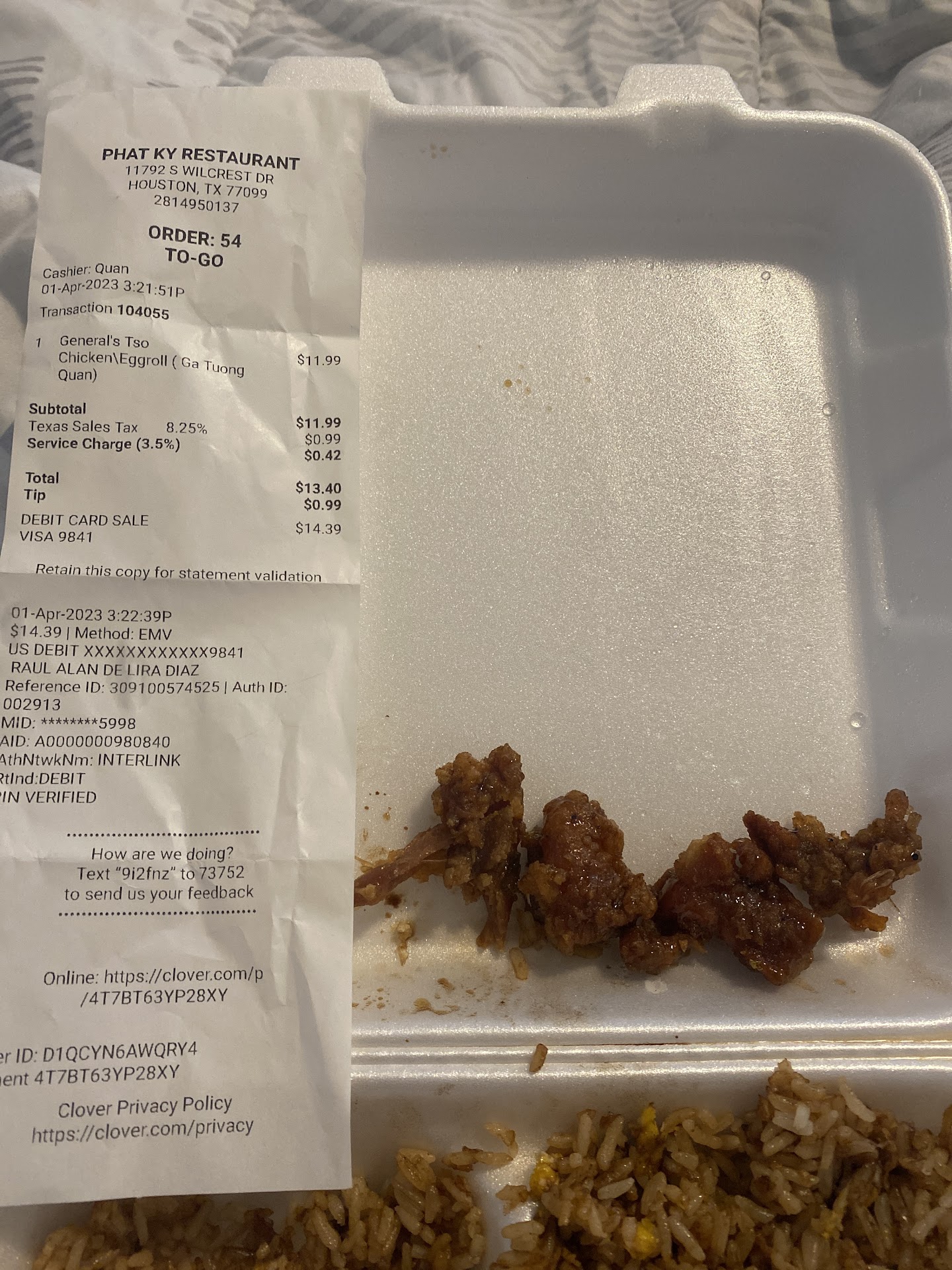 One more thing made me feel bad. I ordered totally 8 dishes, when they handed over my ordered food, I wanted to open and check inside the plastics bags to ensure all my ordered items were there. The old gentleman at the front told me "No need to do that since I knew all ordered items are already packed inside, you should trust me.". Since this was the first time I dealt with this retaurant, I pursuaded myself to check it when I stepped out to the parking lot and then opened my car's trunk. I was counting the food plates one by one, about 1 minute later all of sudden a young boy run from the inside of Phat Ky to me, "Sir, here is your ordered Fried Oyster"! I looked at him, and looked over his shoulers at the glass windows of the restaurant, someone inside was also looking at me.