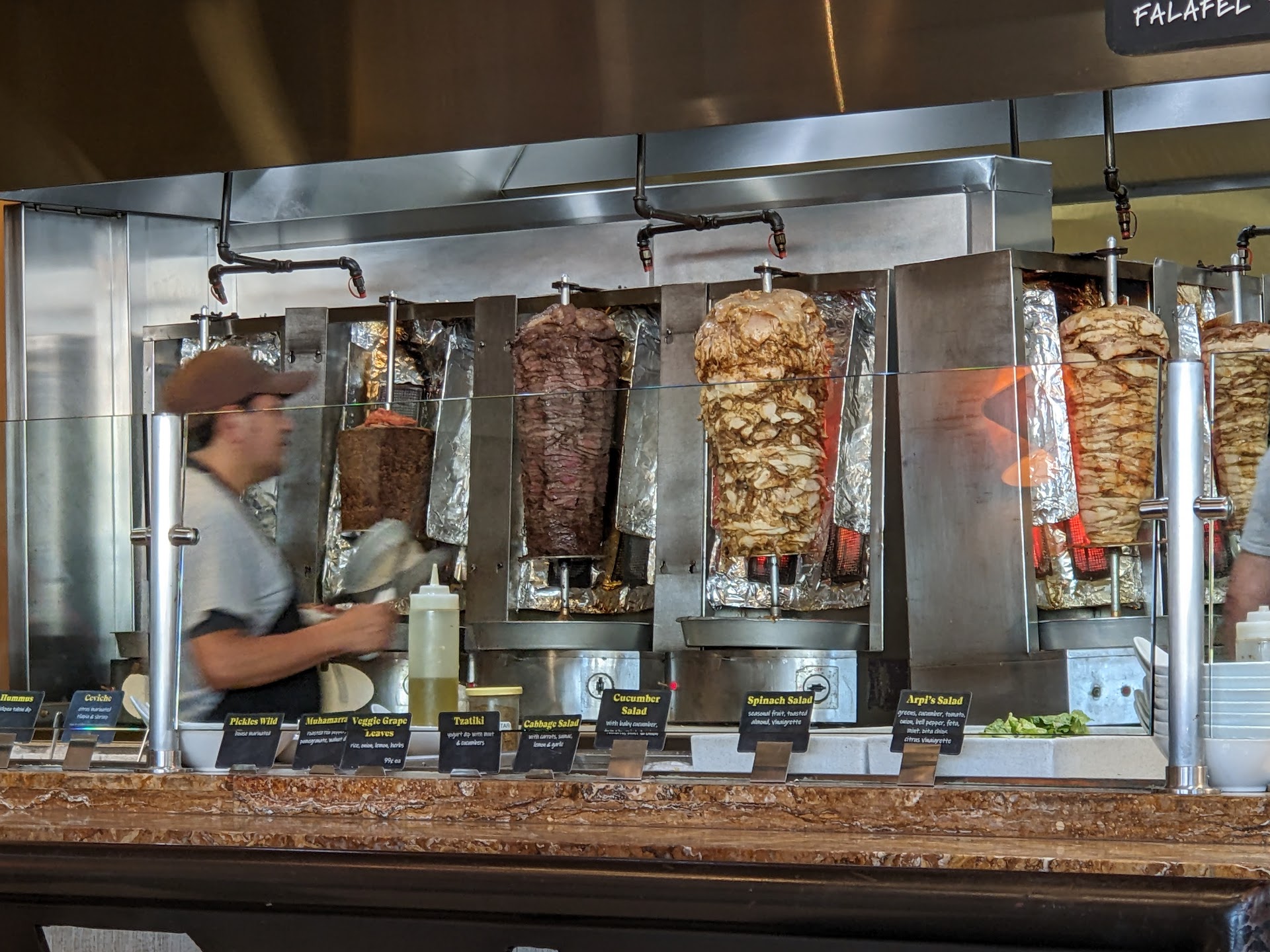 Read moreI ordered the chicken shawarma with cucumber salad and hummus. For some reason our food was brought to us in to-go containers. The lady at the cash register was somewhat rude. I asked for hot sauce and garlic sauce for two orders and instead of telling me that there is an additional charge she just took it back. So I had to ask her if I could purchase more. I asked for pita chips to go with my hummus and she told me they would be included in my dish. They were not included when I received my food at the table so I had to go back and ask for pita chips. I haven't been here in a while but I could definitely tell the service...