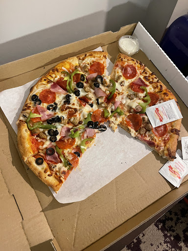 Only 4 mozzarella sticks arrived rather than 6 (which left my friend hungry). Delivery was ~15 minutes late, so the food arrived lukewarm. There were too few pepperoni on the American (but the other ingredients were a good amount).