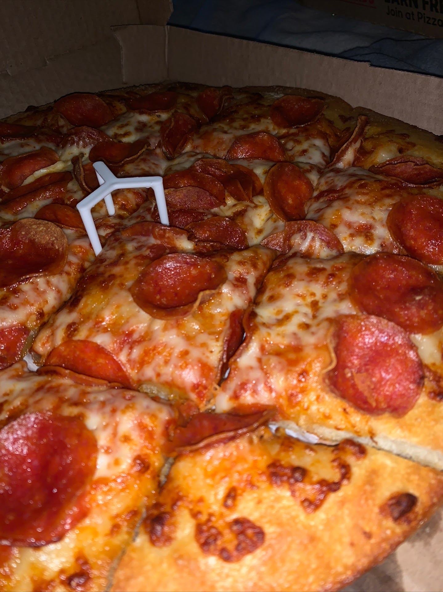 Read moreWe recently took advantage of the $12 large pizza deal. The deal said you could get any crust and any pizza with any ingredients for just the $12. We really expected that the pizza would have just the bare minimum of ingredients but instead it was absolutely loaded with toppings. This was a truly indulgent super supreme with a pan crust.