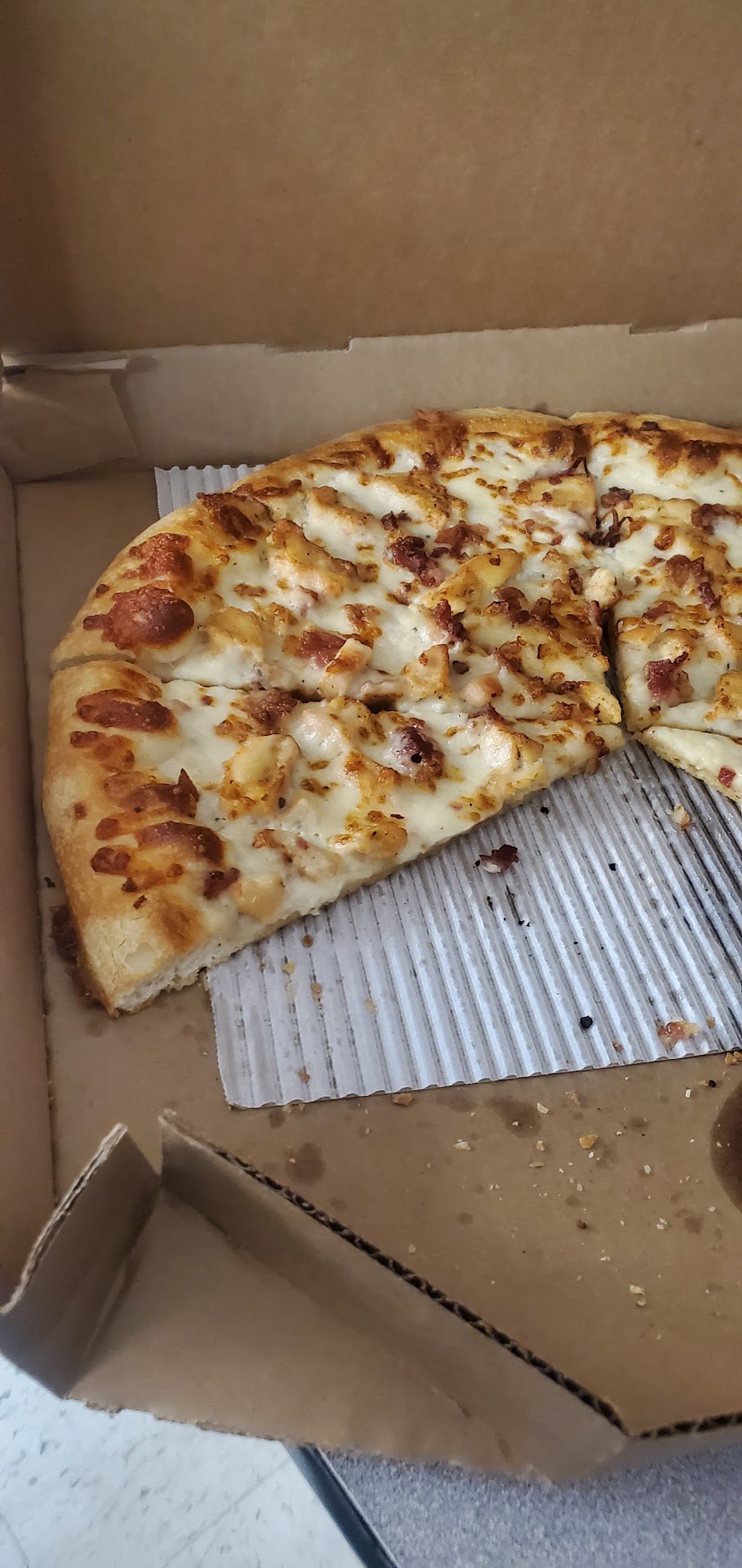 I left and decided to take a look at my 3 items. 2 of the items were correct. However, I ordered a 3 topping pizza: extra pineapple and ham 😑 they gave me a lame 🍑 𝘰𝘯𝘭𝘺 𝘤𝘩𝘦𝘦𝘴𝘦 𝘱𝘪𝘻𝘻𝘢.