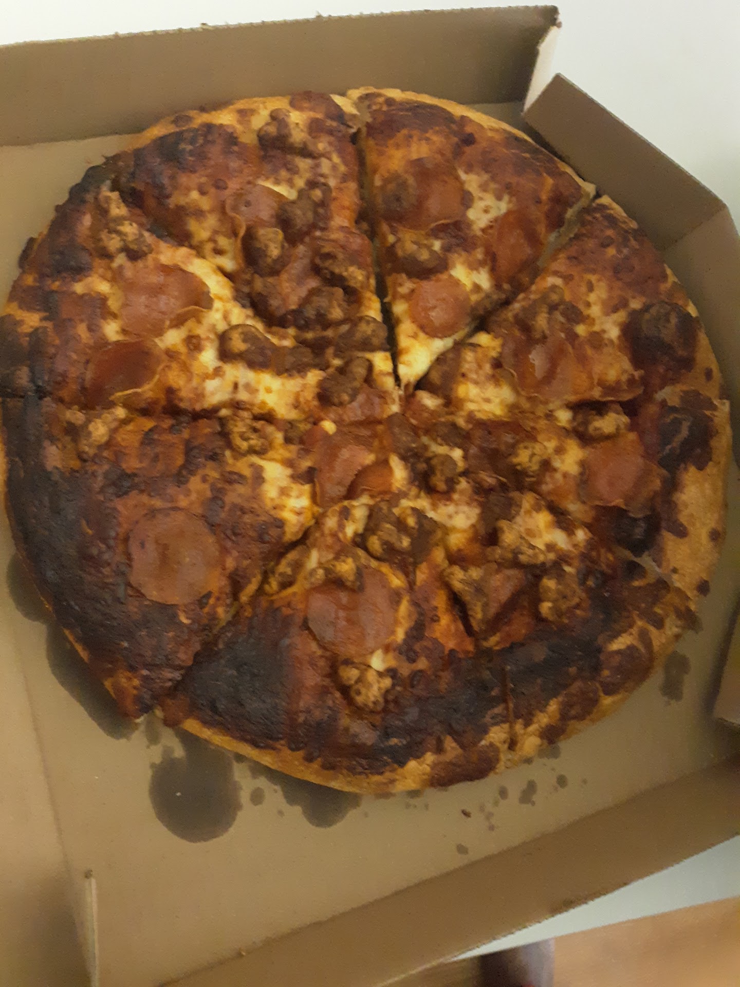 I placed my order online for contactless curbside pickup. Once I arrived at this location, I spent an additional 10 minutes calling to let them know I'm waiting in my car. Again, after 10 minutes, finally, an associate (woman) picked up the phone. There was a lot of static on the phone line, along with, a lot of background noise. Neither the associate (woman) nor I could hear one another clearly. The both of us had to repeat ourselves several times. When I brought up the notion of having to call for 10 minutes, the associate (woman) didn't acknowledge nor apologize for the inconvenience. The associate (woman), simply, continued with the call and stated that my order will be out shortly. Side note: A delivery driver that wasn't wearing a mask or any gloves, pulled up, carrying a delivery bag, walked inside after I ended the call. This same delivery driver walked right out with my order. That being said, that let's me know, he didn't wash his hands or use any Sanitizer. Though, this delivery driver was sweet and let me know to be careful because the pizzas were hot. That doesn't excuse the fact that COVID-19 regulations are in effect for a reason and this location is not abiding. Once he placed my order in my car, I checked to ensure it was correct and noticed how much grease was smeared all over the pizza boxes. Absolutely gross! I expected more from one of the top three pizza business chain in the United...