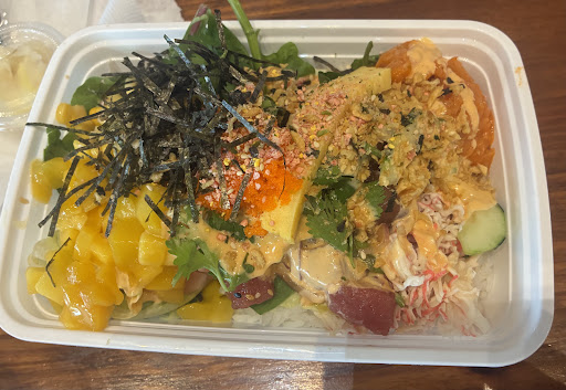 The staff was friendly and service is fast. The fish is decent, but compared to Seaside Poke, the fish cuts are small and not very flavorful. The yellowtail should be sweet, the spicy tuna should be spicy (and it really wasn't), and thr salmon should be smooth like butter with a slight smokey flavor. The color of ther fish is dull too with the yellowtail being more grey than white and the salmon being a muted orange instead of a bright salmony color. It wasn't bad, not at all, but ive had better.