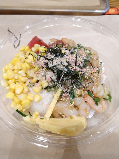 Bright, clean and fresh, Poke in the Bowl is a typical small poke cafe in a strip mall. Easy to see from the street and with free parking. Wheelchair accessibility is on either end of the strip, and parking allows the cars tp pull up with the front end on the sidewalk. Clueless shop owners put boards out to advertise making it hard to maneuver a wheelchair past between the car and board. This isn't Poke in the Bowl's fault but be prepared to manage it.