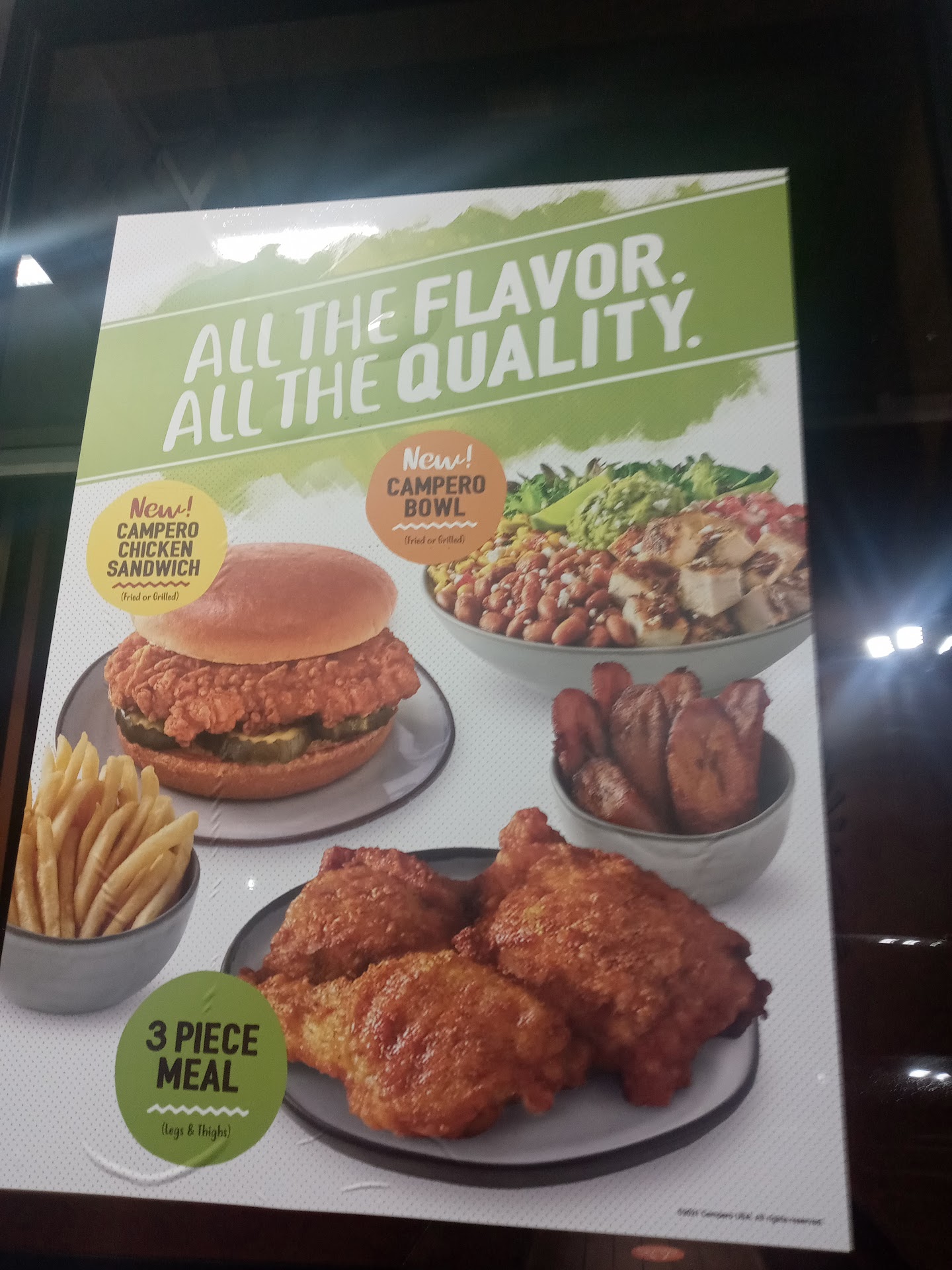 Read moreI heard of Pollo Campero from a Guatemalan who swore by this food so I had to try. Unfortunately my spanish is no bueno so if you go, practice because my order was not what I ordered and when trying to ask about it I got a warm smile but no acknowledgment. Luckily im very patient and realized this chain probably serves mostly hispanics so accepted the reality. The chicken is definitely tasty but didnt have much flavor. The crust was crunchy but I could tell chicken wasnt marinated before the coating. My fries were interesting too as they were all stuck together and not salted and not sure if thats how its supposed to be but ive had way better. I didnt get any condiments and was expecting some authentico salsa or something so that was also new to me. The box everything came in was a new twist Ive never experienced. Overall it wasnt terrible but wasnt what it was all hyped up to be and am sure its more nostalgic for Chapines to have a piece of home. I still recommend trying it and hope when I mext visit can get what i ordered and maybe some...