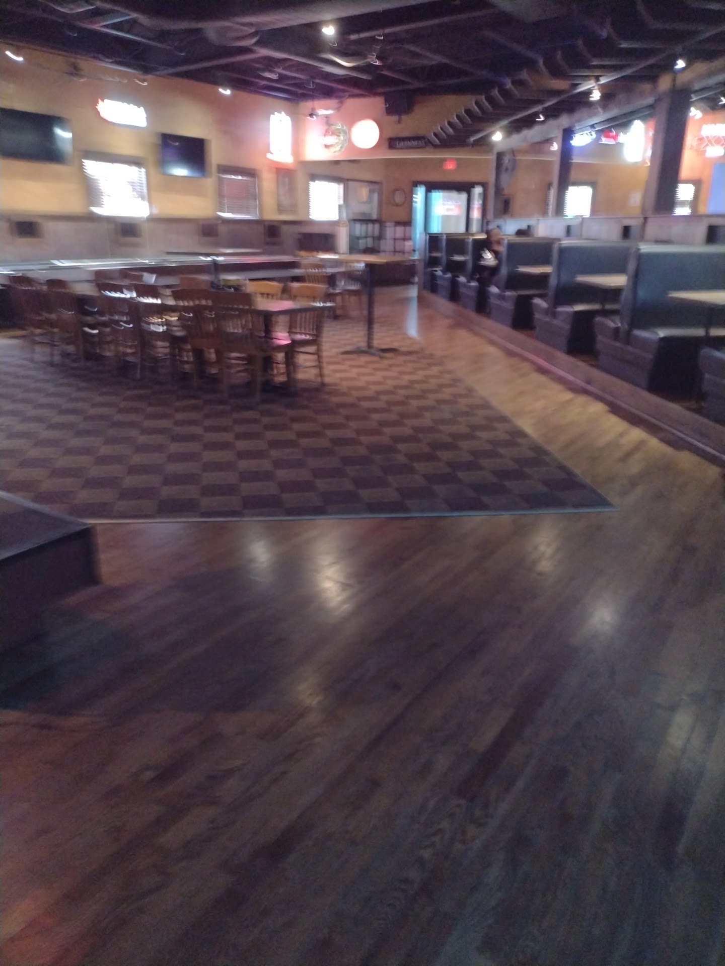 I couldnāt get a soda and a beer for my friend. I tried sitting at a table I couldnāt get a waitress if they even was one went up to the bar and the bartender would not walk away from the two guys that she was flirting with long enough to get a drink for anyone. Some guys who had a bucket of beer on their table offered to share so my girl sat down and had a few drinks with them and I never did get my Sprite. The bathrooms were atrocious and some girl busted in the door while I was using the bathroom even though I had locked it so the locks apparently donāt work very well. Thereās homeless people sleeping outside and when I went to the car to grab a pack of cigarettes some dude started asking me if I could give him a ride up the road just for a second he had all of his bags with him a couple of backpacks and a duffel bag and like he hadnāt had a bath. He reeked of alcohol and it scared the crap out of me I went inside and asked if there was a manager who would walk me to my car so we could leave and of course I couldnāt find a manager just like I couldnāt find anyone to bring me a drink. I did not feel safe there, I didnāt feel comfortable there, it had a predatory vibe to it. I wonāt be...