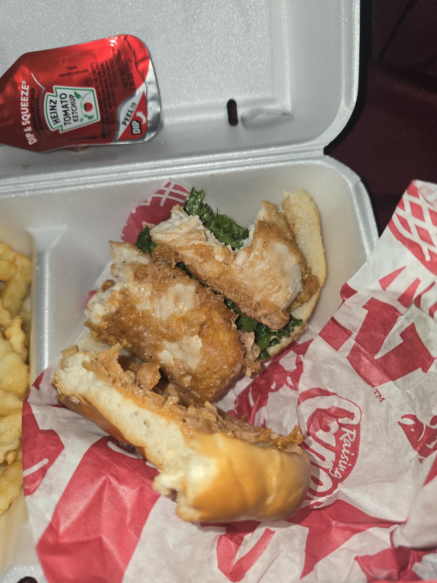 Read moreIn all my years of eating Cane's tonight's experience was a definite first. Very strange interaction at the drive thru window. I complained about the extremely small portion of fries in my box and the cashier looks and says That looks like 4 ozs of fries would you like me to weigh then for me? Since the first Canes near LSU I've NEVER heard this so now I'm intrigued so ....Please weigh them. She takes the box and i can see every interaction through the window. She shows the cook. Shows the manager - who oddly needed to see what i looked like before responding. Cashier returns with the box with maybe 4 more fries in it and says we don't have a scale but they said it looks right but threw in a few more (literally 3 or 4 more). This definitely won't be our goto Cane's. So they are eyeballing the 4oz but stand firm that it's 4 oz. Im througly confused about the practices at this location...