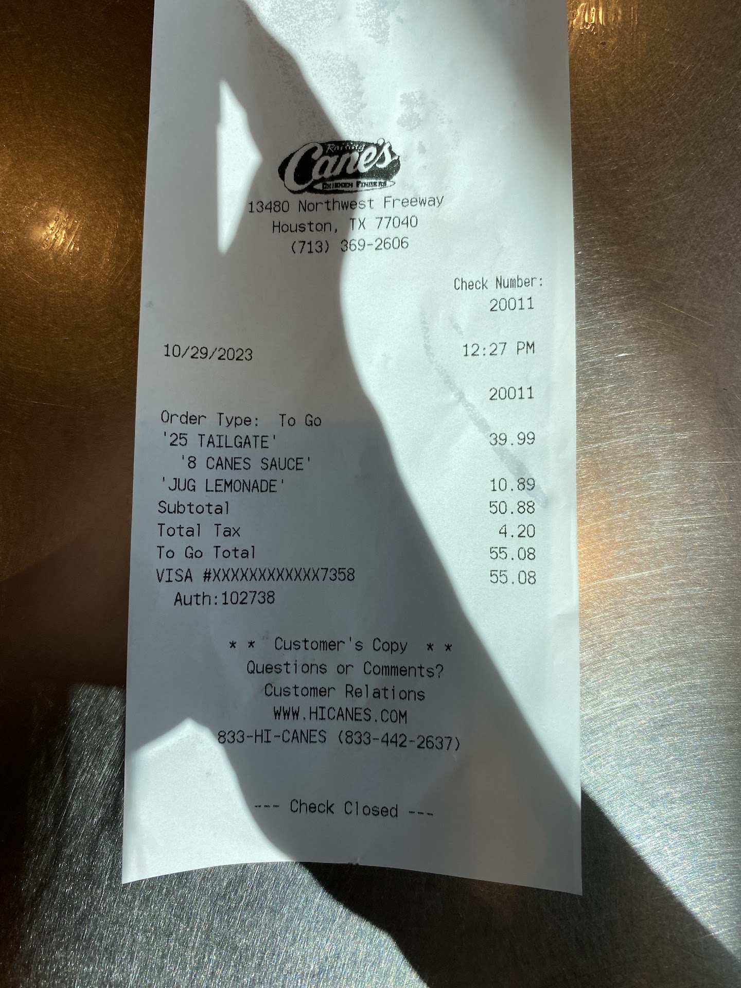 It's so disappointing that this canes has not been open long enough and their service is not up to par with other locations.we arrived at the drive through at 1140pm with Noone in line just us and for about 4 minutes Noone answered the speaker even though we said hello?i had to call the store and then they answered the speaker. So We ordered our meal with extra sauce and Arnold palmer for thw drinks and they said they didn't have enough tea for 2 drinks only for one. So fine we changed one of the drinks to a diet coke. Then we paid and got our drinks with no extra ice and still didn't get the Arnold palmer they gave us a lemonade instead. Also our meals didn't have extra sauces like we requested. Then she had the nerve to say we didn't ask for extra sauce. Which ok fine she charged us for it and we gave her a dollar and she said she didn't have no change.. no change??? What kind of business are they running in there. The employees are too busy cleaning that they are not paying attention that they have a customer waiting on the drive through and then not give them what they requested initially which it's the employee and not the customers fault. Keep in mind they close at 1am...