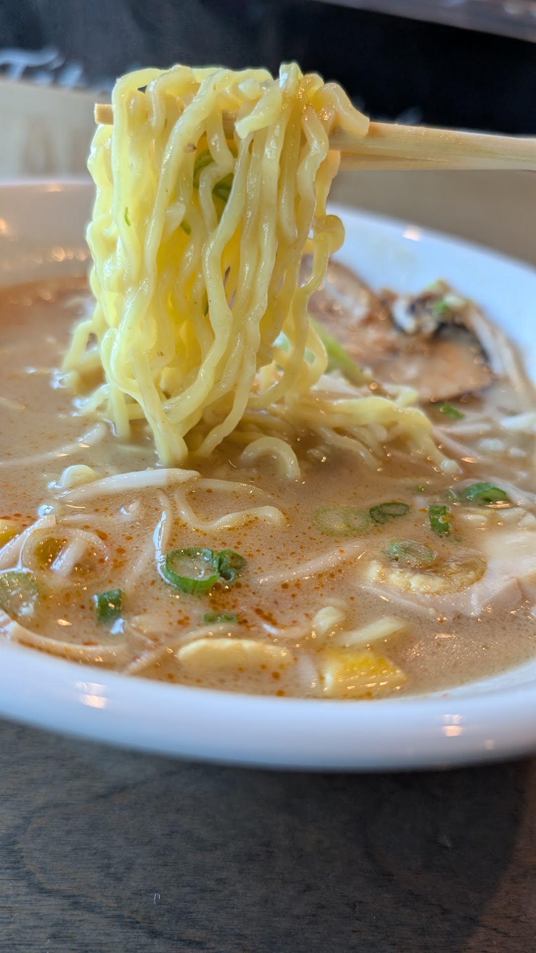 Food: I ordered the most popular spicy ramen dish on the menu, according to my server--the Spicy Garnet. The ramen was subpar for me. Noodles were overcooked and soggy, the broth was only warm, not hot, the pork was so tough i could barely pull it apart, even with my teeth. I was finished with all of my toppings before I was even half-way finished with the soggy noodles--one of my pet peeves when it comes to ramen. If you have to order extra toppings to leave a restaurant full, it's a problem, in my book. Was it passable? Yes. Will I come back again? No. Definitely better Ramen...