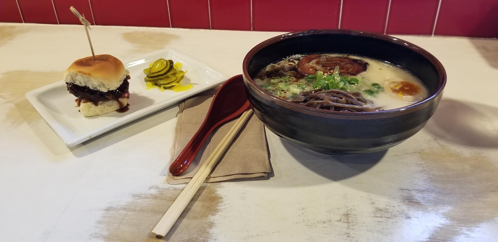 Read moreRamen Tatsu-ya in Houston is tucked into the Montrose district, right off the road. Of course, you can see the unique front from the street which invites you into restaurant. Inside, you’re immediately greeted with the ordering line; order first, then sit down at this joint. I stepped up and ordered their first menu item: the Tonkotsu Original, as well as a Munchie Katsu Slider from their Small Bites menu.