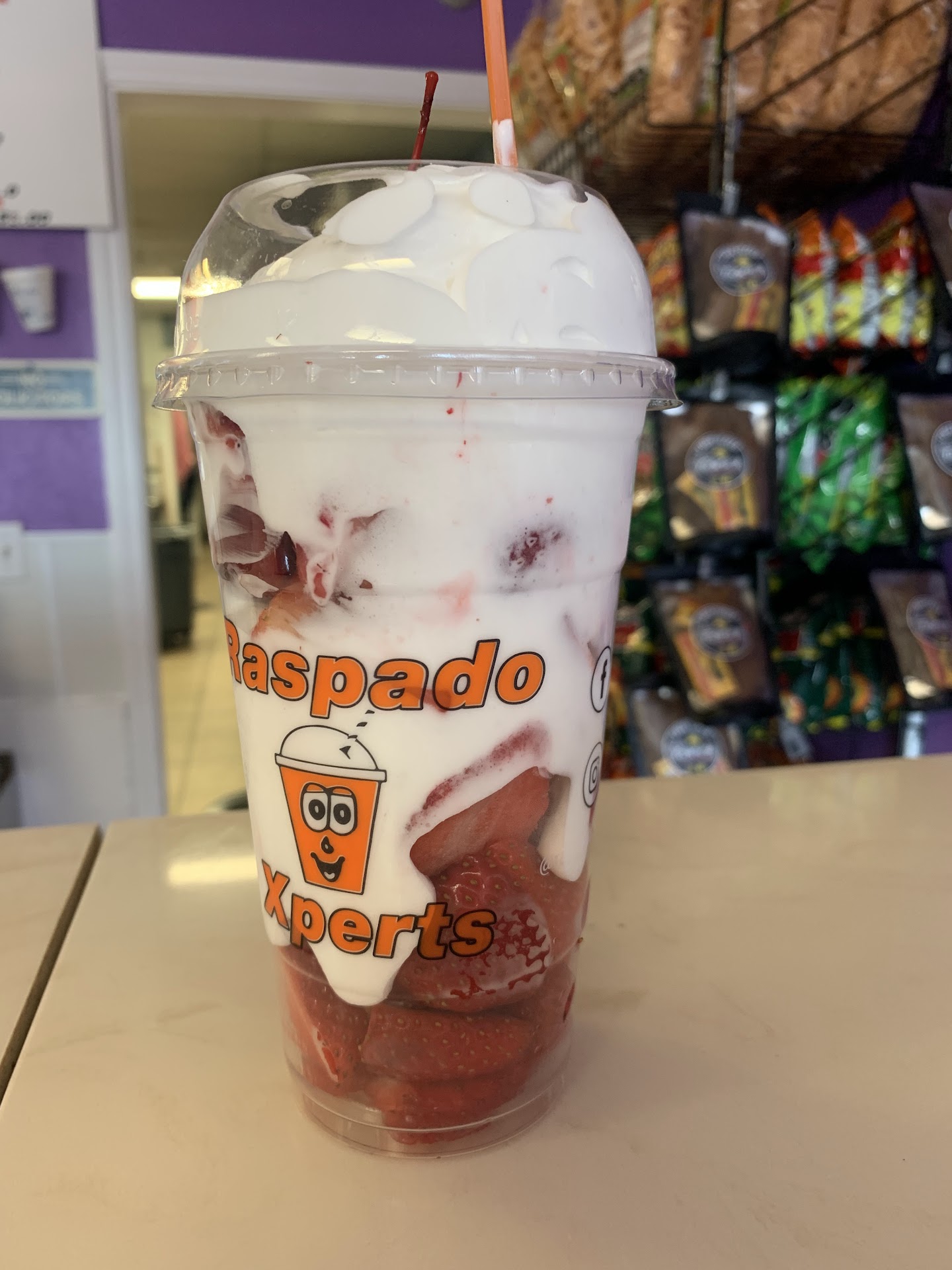 🔴I went into this location to get a corn in a cup, and ended up getting a chocolate-nut covered apple as well, along with a watermelon raspado. I ate the corn, it was good, I had the drink and after a few sips it was gone, but the cup was filled with crushed ice almost to the top. What looked like an 80% ice and 20% drink. I accepted that 'I' should have probably asked for less ice. On the way home, the plastic wrapped apple got a dent in the chocolate, it was WAY too easily dented and I knew it was likely going to be a disaster under that chocolate, and my sister made a joke like "watch it have a bruise you cant see". We get home with that chocolate, nut covered apple and decide to cut into it, because I was going to share with my niece and a few other people. So I proceed to slice into this apple, and the knife almost slices into it like cake. I was horrified to find that the apple was basically apple shaped applesauce wrapped in a husk of chocolate. I wish I was joking and I knew how to post pictures in this review so I could show the state of this apple. I think if I had squeezed it in my hand, it'd turned to moosh. It was refrigerated too, so it must have been there for weeks, just dying away, waiting for an unsuspecting customer to fall for it. That's not all. I called to ask what they can do about the apple and she asks me "did you request a receipt?" "Uhm. No, she didnt give me a receipt" So it ended up she wanted me to take the apple out of the trash and bring it in for proof that it was rotten. Even though I offered to show a couple of pictures I snapped of the apple, she said that wasnt enough to refund my money. That apple had to have been weeks old, and NO ONE thought maybe it was time to throw out the apples?