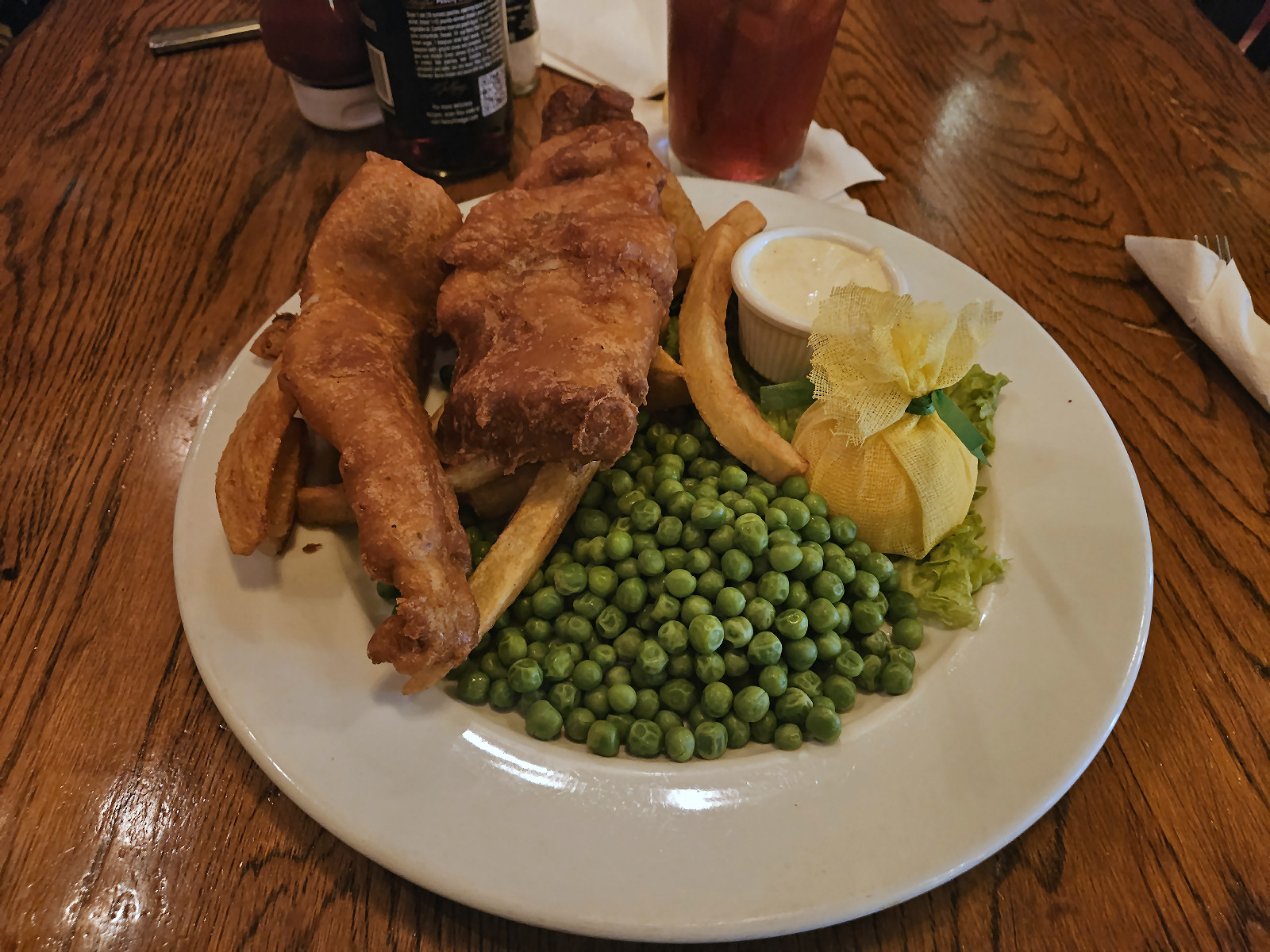 Full order Fish and Chips I felt like Gordon Ramsay trying to taste test the famous British staple, fish and chips and end up yelling how flavorless the fish was. Sitting at the table and peeling off the batter to see how unseasoned everything was, truly left me feeling like how Gordon feels when he's served the worst dish of his people. The green peas basically were so flavorless, even Joe Bastianich probably would have given you the stink eye of, "what in the hell were you thinking serving me this".
