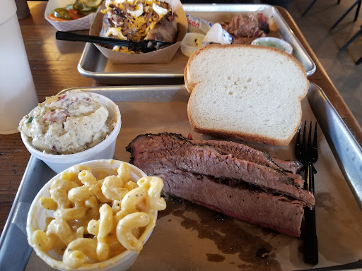 Read moreI want to be honest and respectful in my review. I probably won't go here again. I don't think the establishment is the worst place, but for the money I paid, I have enjoyed tastier brisket. I ordered the bricket plate. It was not dry at all. It was a little fatty, but not 50 percent fat. It had no flavor. I never understand why some places don't want to season the meat. I had to dress it down completely in barbeque sauce. It was only 3 slices of brisket. The mac n cheese was pretty cheesy. I'm good with that, but again it had no flavor. The potato salad (I won't comment on). My wife had the bake potato. The potato was a good size. And it had a good amount of meat in it. Just missing flavor. The peach cobbler was grainy. It taste like it was made with cornbread or corn mill mix. I did rate the service with 4 stars. The food was ready pretty quickly. I gave this place 3 stars because of my preference to have food with flavor. 60 dollars that included a 18 percent tip for 3 slices of brisket, loaded potato, 2 sides and a peach cobbler didn't seem worth it for me due to the lacking in the food department just didn't seem worth it. That is my thoughts, it may be worth it for you, especially if you don't really like food that is seasoned. Some people aren't in to spices or seasonings outside of...