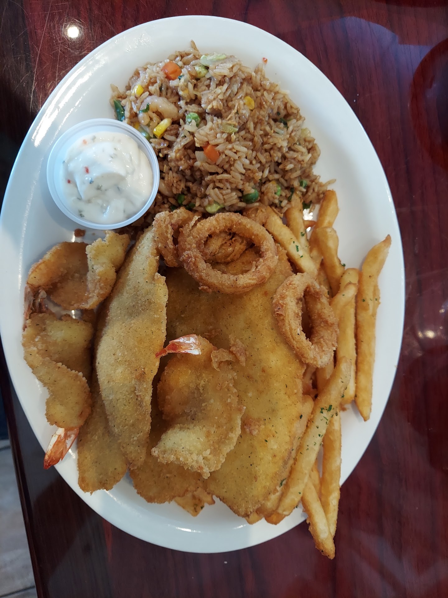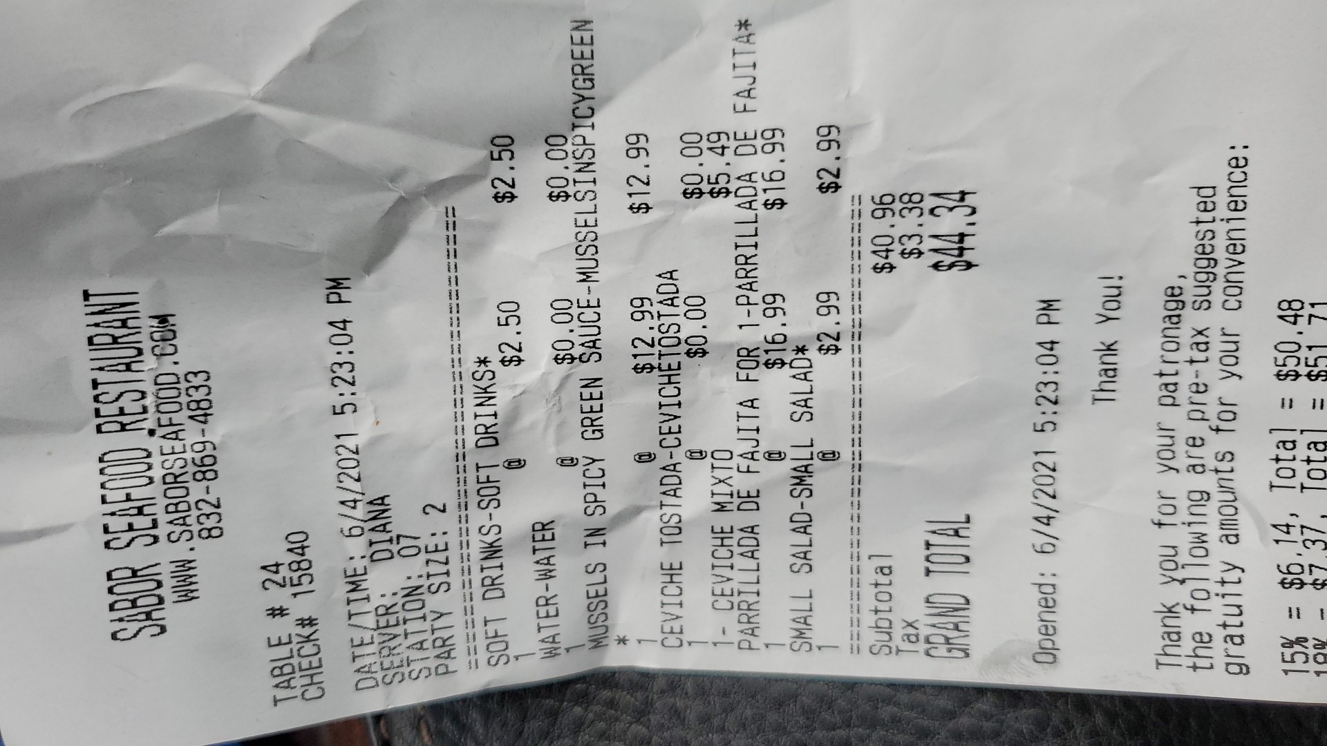Read moreWe've dined in before. Be aware on weekends they have bandas and it's LOUD. So loud you can't hear your partner across the table, much less the wait staff to order. Idk how they manage, but they must! I have sensory issues so we asked to sit in a quieter spot and they had no problem with that. Service is friendly and fast! The food came promptly and was delicious, I had the ceviche mixtas and my partner got the sabor combo empanizado, mixed fried seafood platter. Comes with fish, shrimp, calamari, fries, fried rice, a salad and some sauce. The sauce though, tastes like marinara. There was no cocktail or tartar sauce which I found strange but didn't mention. We didn't take pictures that night, however I did get takeout of the same fried platter myself. It was still fast service, and I'm positive cooked to order because there were no dine-in clients at 2pm that day. It just wasn't as good, though. The fish, shrimp, AND the calamari were so hard and rubbery I couldn't enjoy them. Maybe an off day, idk. I'll still go back, they have a large wonderful looking menu. Next time I'll get...
