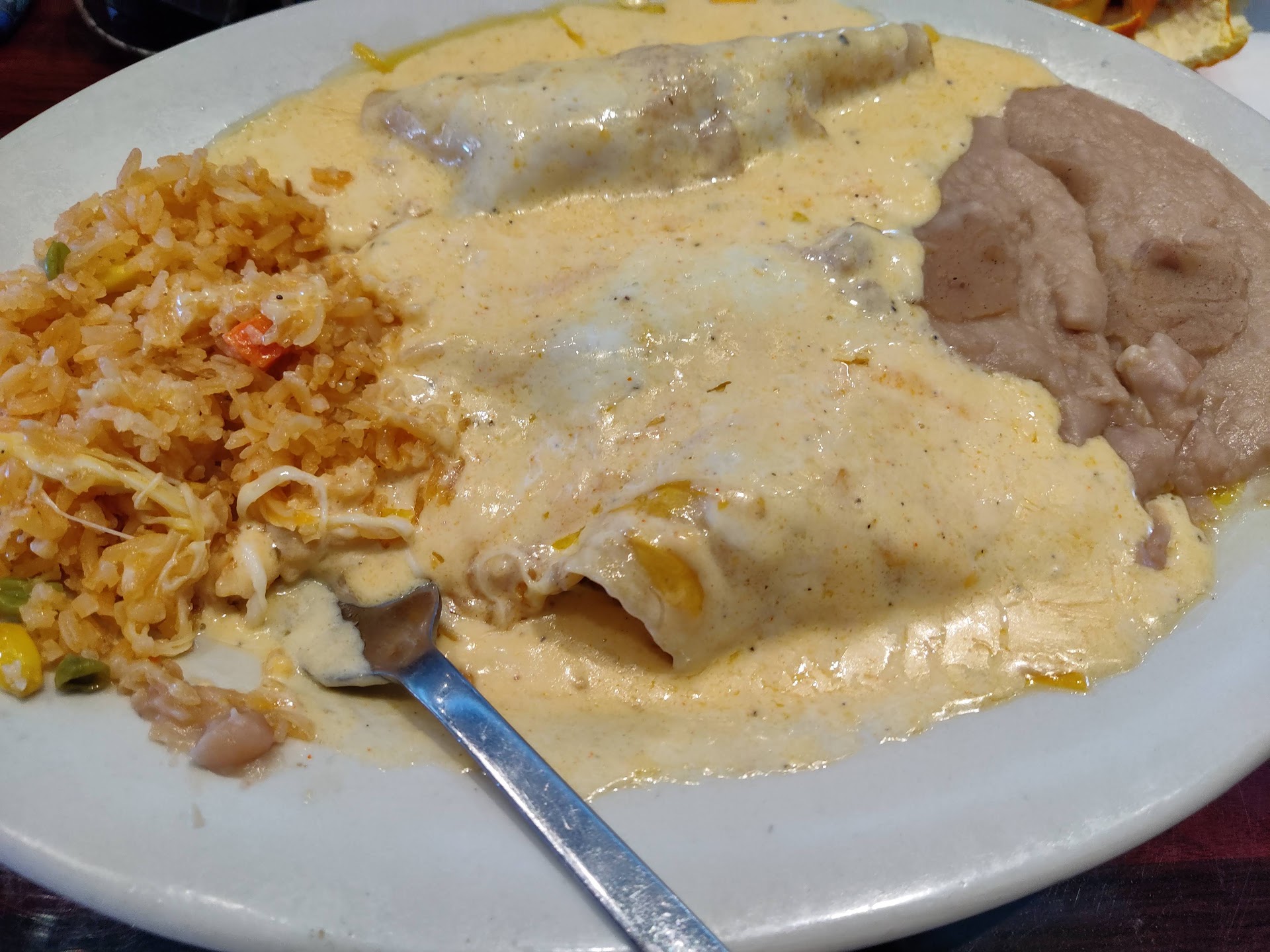 Read moreThis Mexican restaurant has a little Asian fusion in it's menu. The restaurant wasn't busy and we weren't seated quickly. Chips were warm and needed salt. Red salsa was brothy and the green sauce was yellowish with a buttery flavor. Beef fajitas looked steamed vs seared. I ordered the ceviche tostada with lettuce in place of the chip. I wasn't advised that the shredded lettuce would cost 2.99 and it was not served as requested but after I finished eating. The ceviche had a good flavor. I also ordered the mussels in spicy green sauce. The sauce had a great flavor but apparently contained cheese which wasn't listed in it's description on the menu. The sauce was stringy and as it cooled,the cheese began to solidify. I am not a fan of loads of cheese. Our server tried to bring food to us that we didn't order and did not believe us when we reminded her of our actual order. This restaurant was not busy so we were confused about the food mix up. She had no idea what the green sauce served with chips was flavored with and seemed not to know about the cheese. So sorry, thanks anyway, here's your bill.