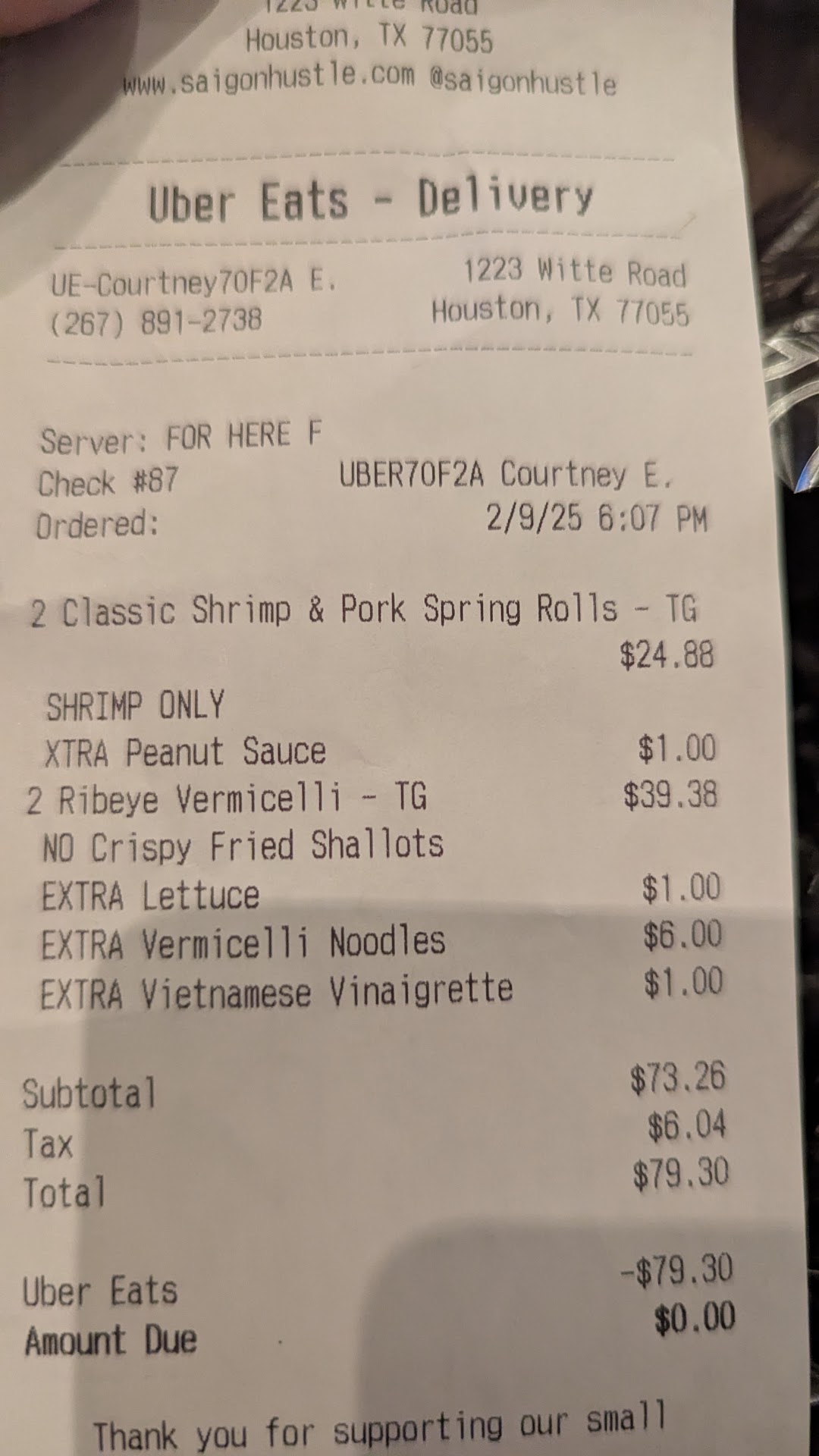 In total, we paid around $113 (including tip) for two banh mi sammies, a bowl of pho, vermicelli, spring rolls, che thai, vietnamese coffee and two sides. I would only recommend Saigon Hustle to people who 1) have little to no experience with Vietnamese cuisine, and 2) live in the area and cannot/will not drive out to Bellaire. For those who love Vietnamese food, I think Saigon Hustle is a great place to get delicious banh mi & ca phe sua da to-go on a midday lunch break, but definitely look else where if you crave a bowl of pho, vermicelli, or rice like you had when you...