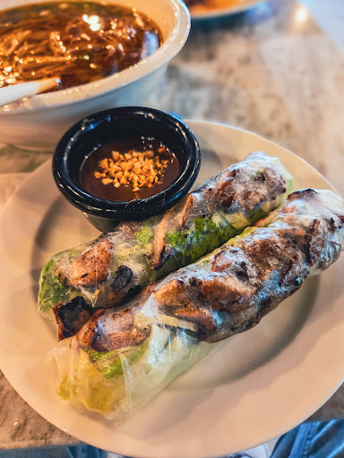 Food: -Spring rolls: jam packed, did not skimp on filling. Dipping sauce was very good. -Chicken wings - got the fish sauce. Super hot and fresh, light crispy batter. -Cheesesteak banh mi: skeptical of the concept when ordering, but was pleasantly surprised. Bread was good, appropriate amount of veggies, and the meat was very tender. I was told they use ribeye. -Pho: The main event. Broth is spot on, no need to add any hoison (which to me is like doctoring a crappy steak with A1). Good amount of noodles, ample serving of meats, and served hot. No skimping on bean sprouts and herbs.