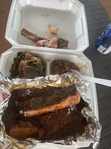 Read moreAll the 1-star reviews about this place are accurate. I usually walk past this place but I decided to give it a try since they had a nice sized patio with tvs. It didn't take long to order my food and it was ready in about 10-15 minutes. I ordered the 2-meat bbq plate with 2-sides and a small order of peace cobbler for desert. After I placed my order I asked the staff to turn on the tv so that I could watch the football game. Someone came out to turn on the tv and just left without turning to the football game. I asked 4-5 more times to have someone turn to the correct channel and each time I was told someone would be out but no one ever came so I turned the channel to the game myself after about 20-minutes. The treatment and lack of customer service is what I always expect from places like these with hood dudes taking orders. I ate a little bit of my food, the ribs were hot and falling off the bone but the beans were basic and the greens were bland and cold. This place is trash and I will not eat here again. I did like the BYOB however, It gives selling plates out my house from the back door. Eat someplace else, it is...