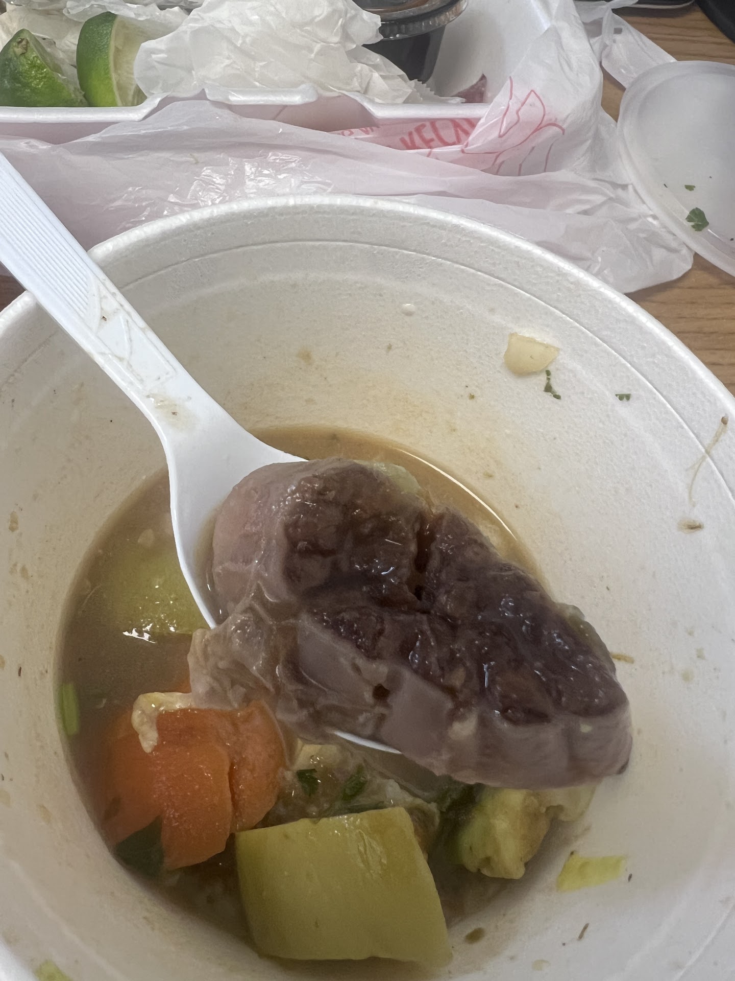 I took my food to my office to eat, and I got really disappointed that the money that I paid for it it doesn’t worth what I asked for a soup as a sample flavor for it and they were gonna give me a cup, but I decide to get a whole plate for it and they did give me a plate I saw from the counter that what I had was the leftovers it was full with a lot of vegetables but not me at all. I felt like I pay like $10 for it, but it doesn’t work it.