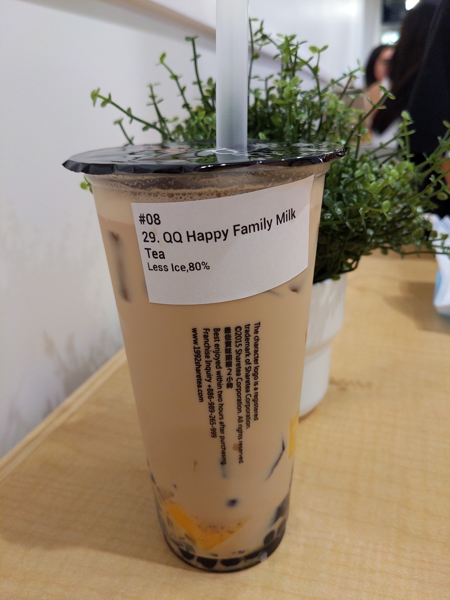 Read moreThe drinks at Sharetea are on par with those of other boba shops in the area, although I do think there is room for improvement on the menu selection especially with respect to the fruit teas. I understand this is a change that would need to happen on a corporate level which will not reflect in this review. My three stars are due to poor service. My husband and I came about two hours before closing a few months ago and they had already run out of tapioca for the evening. I would understand if it had been 30 minutes before closing, but there was still plenty of time for customers to walk in craving boba. Yesterday my husband asked the young lady at the cash register whether their milk teas were made with dairy or nondairy creamer; she didn't know the answer to his question so she turned to the other girl working with her who laughed, looked at us both with a blank stare, and said that it was in fact made with nondairy creamer. She did not respond confidently, which is not what you want to hear when you have lactose intolerance. I am now writing this review from Teahouse down the street as Sharetea did not have wifi and we did not find out until after ordering our drinks. Thankfully we received a full refund but my husband and I are reluctant to return after several subpar experiences. He will be writing a separate review about a terribly botched order that was delivered to him and his coresidents in the...