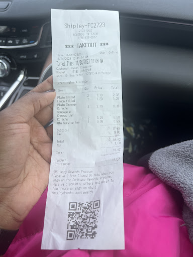 Very disappointed. We are long-standing Shipley customers and were excited about this location closer to home. As we do often at other Shipleys, we ordered half a dozen donuts. We gave her a card paid and went home. We noticed they charged us $6.50 for six donuts when a full dozen is only $7.65. We went back and hour later to inquire and they said that if you order less than one dozen donuts, they will charge you for each donut. Every other Shipleys we go to usually has a discounted price for half a dozen or a dozen. We only needed four donuts and would’ve just bought four had we known they weren’t giving a discount. When asked if we could pay $1.15 more to get six more donuts, they flatly said no. I showed them the receipt that it was less than an hour that we had been there, but he didn’t care. It was falling on deaf ears. I know this is a business but I truly feel other locations would’ve told us it’s better to get a dozen. We will not be going there again. We had begun going often to Shipleys again now that there was one closer to us. Not anymore.