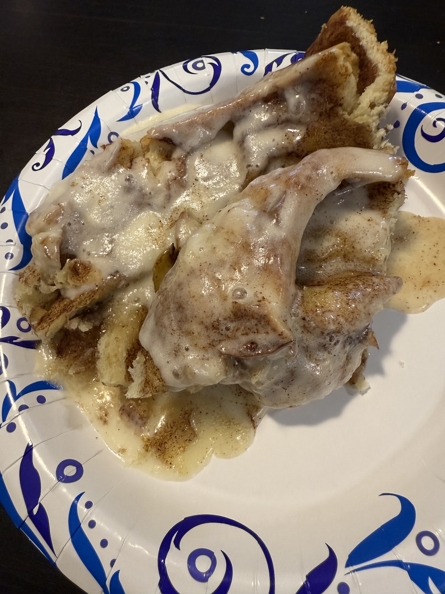 I just got home and warmed up half of the apple cinnamon roll which melted wonderfully and looked so tasty. I would say for a vegan dessert it turned out pretty good. Coming from a non-vegan I feel the sugar amount was great to cover up most of the after taste. I am not sure what they substitute eggs, butter, and such for when making a vegan cinnamon roll but there is definitely a difference between a real cinnamon roll. Overall if I was a vegan looking for a great vegan cinnamon roll I would say this place did a great job! Just wasn’t expecting the place to be vegan lol. Definitely was...