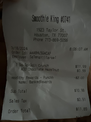 Read moreMost terrible experience at a smoothie king. I went in on Free Upsize Friday and ordered a medium smoothie. The cashier David told me that it takes off $1. But the price difference between the small and medium is more than $1. I shrugged it off until I noticed I was charged a price that wasn't even on the menu board. I asked the shift leader, Leticia and she said its corporate. I went back to ask David something and she jumped in to tell him "Don't respond to her, just ignore her." Feeling disrespected, I threw away the smoothie and asked for my money back. Leticia said no, and when I asked for her to call the manager she replied that she was going to call the police, still refusing to give me my refund. Why would I pay for a smoothie I didn't drink at a place that overcharged me then threatened to call the police on me for asking...
