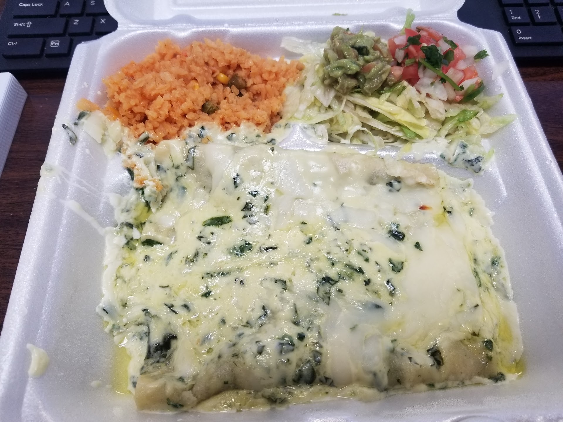 I recently found Sol Cafe and my experience was absolutely magnificent. I did not even realize they were right there on Travis street. I always like to try new places so I stepped in. I was greeted upon entry and I informed the young lady I would need a few moments to review the menu. It didn't take long to find some spinach enchiladas that I wanted to try. They normally come with chicken, but I asked for just the spinach since I do not eat meat. The enchiladas come with two sides and I selected the rice and the salad. Unfortunately, I could not try the beans because of the meat. I also ordered an egg and potato breakfast taco (I missed breakfast). After I placed my order, I noticed that you can customize your breakfast taco to add items like spinach, so I'll be doing that the next time. It didn't take long before my order was ready. Let me tell you, everything was delicious. I don't know what they did to that rice, but it was phenomenal. I would order a pan of that rice just because. The spinach enchiladas were fantastic and the sauce was on point. I would have liked some more spinach to make it fuller since I removed the chicken. Perhaps I'll see if they'll substitute potatoes for the chicken the next time. The breakfast taco was more than adequate. I'm not even sure if I'll be able to add anything the next time because I don't think they'll be enough room. The customer service was excellent.