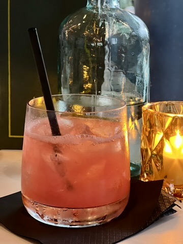 The interior is beautiful and stylish with tall ceilings and a beautiful bar. Albeit in a strange place next to the rooftop pool. There's some indoor seating and additional outdoor seating on the rooftop. There's a pretty view of the city up there, too.