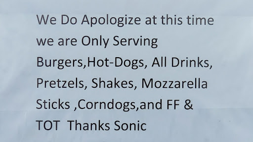 Read moreDon't go to this Sonic. They are incredibly slow (20+ minute wait times with 2-3 other vehicles in the drive-thru/stalls), they get the order wrong 99% of the time, and they're also super, super rude. Don't expect any help from Sonic support, either. It sucks, because I really love their chicken slingers.