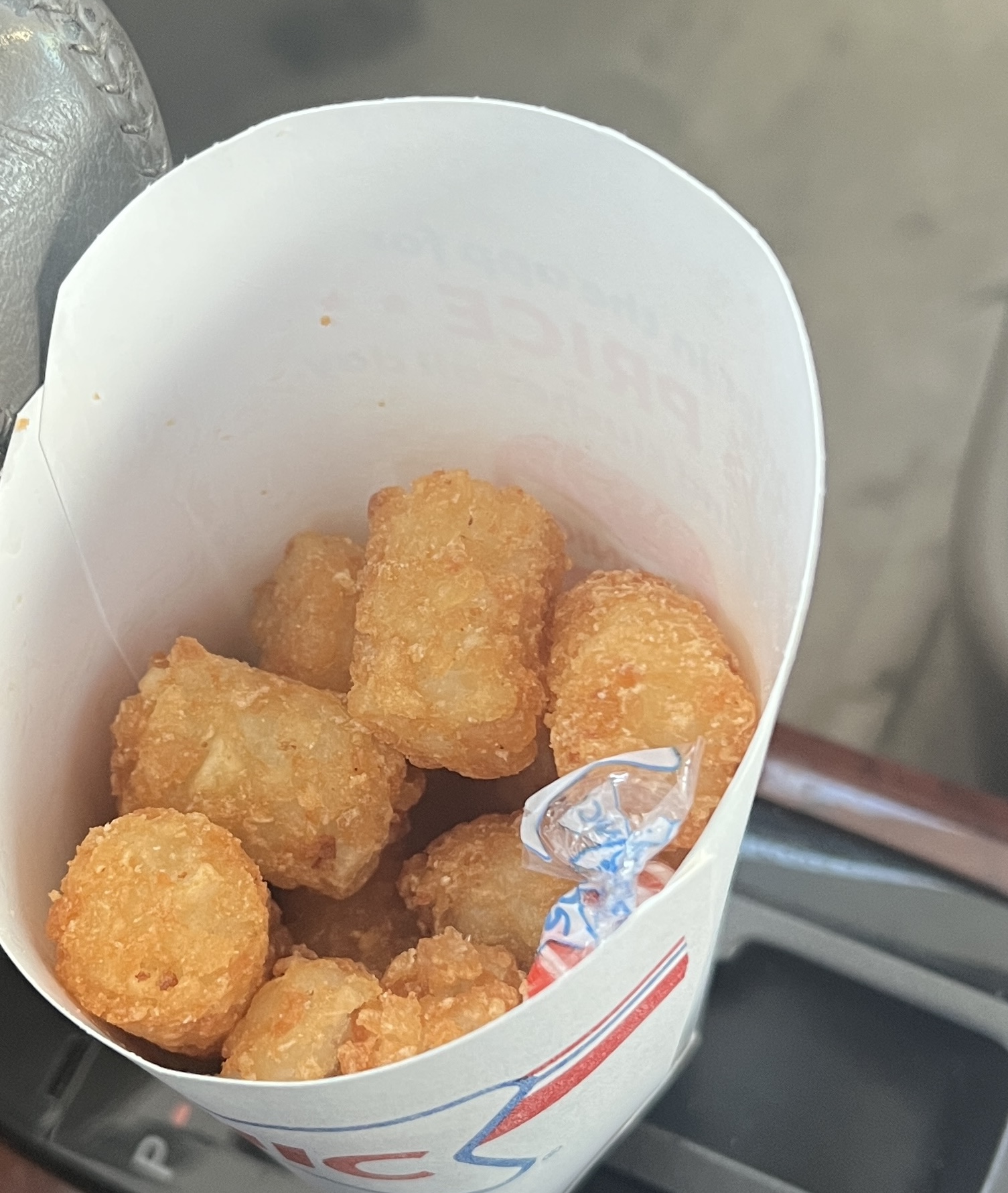 So, 4 times I've ordered tots with shredded cheddar on (which I like) only to be given tots with processed cheese food product (which is nasty on tots). Do better.