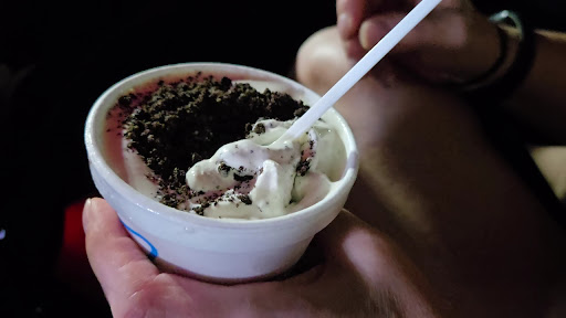 Now one would think that after going back and pointing this out to a so-called manager that they would correct the problem but they didn't! All they did was mixing the cookie dust with the ice cream and it still provided no actual cookie pieces. This is on top of a mini which is probably about 4 oz cost us $3.99! Now I know in today's society with people needing to make a living wage in all while they don't know how to make ice cream, prices have gone up. But I would imagine that for $4 for 4 oz, they should just make what they say they're going to make.
