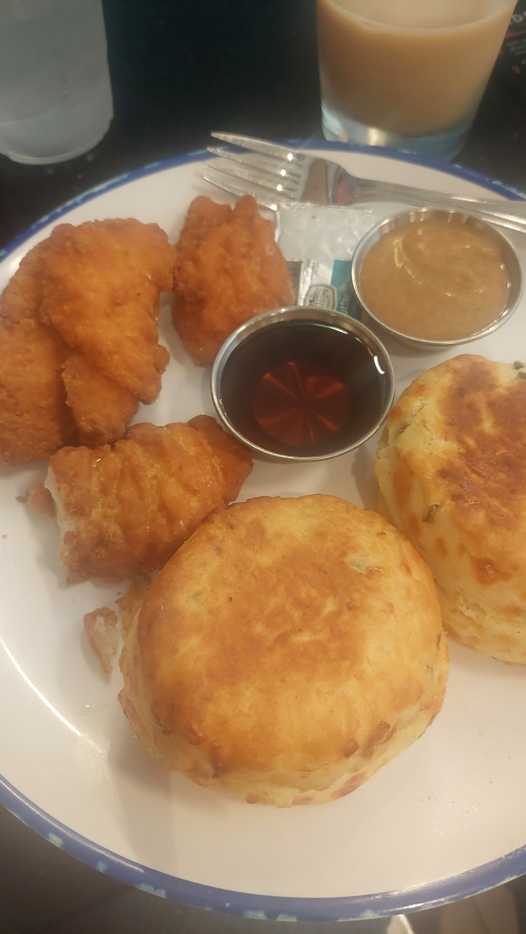 My husband and I had an early morning flights and were excited when we saw somewhere with chicken and waffles. We put in to go orders so we could eat by our terminal. We waited almost 40 minutes for an order of chicken and waffles, a breakfast sandwich, and a coffee. When we finally got our food, mine was cold and his sandwich had gotten mixed up with another woman waiting for her meal. When they finally got someone out of the kitchen to listen to them, they did offer to remake it, but it took another 20 minutes to get his food.