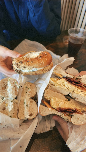 Read moreMediocre service, misleading pricing, burnt and yet cold bagels. Ordered two bagels, one cinnamon raisin with cream cheese and the other an everything bagel with egg, bacon, and white cheddar. Got charged for a breakfast sandwich price which is over $2 more expensive for them to drown it in sriracha mayo that I didnât ask for. The everything bagel was well seasoned but was burnt and stale. The bacon and eggs you could tell were both pre cooked and way over done and cold. And of course got American cheese instead of cheddar, which didnât matter really because everything was drenched in sriracha mayo they decided I wanted. The cinnamon raisin bagel was an atrocity, either they just gave me a regular bagel or they donât put any cinnamon or raisin in the bagel. Super stale, somehow paper thin and impossible to bite through. Cream cheese was fine. The online order menu says $3.00 for a bagel with cream cheese but I guess in person it was $2.50 for the bagel + $2.25 for the spread which is absurd. Coffee was fine but to top it all off I asked for black coffee and they went ahead and put milk in it. On me for not double checking before I left but figured they could handle that. Not sure if it was just a bad shift but there were multiple people who ordered ahead of me struggling to get their orders, which seems ridiculous since there was more staff than customers. Wonât be going back. If the pricing wasnât seemingly done to sneak in up charges it might have been ok but the bagels themselves werenât anything you canât get from a...
