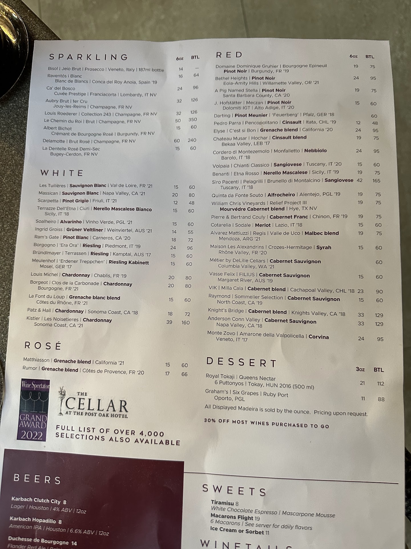 PSS: there is one hour retail parking in front of Stella’s wine bar that valet will commandeer maybe around 4:30 but I saw plenty of people (patrons and Post Oak employees) driving into the parking lot that had valet only do not...