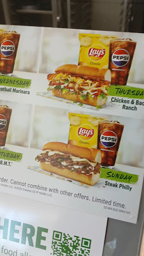 Read moreNice looking roomy store but one thing I need from Subway is consistency. I eat a Subway every day all over the city of Houston. I eat the same lunch everyday. 6" Rotisserie Chicken and bacon w/pepperjack cheese toasted on Wheat with lettuce onions pickles black olives pepperchini light mayo salt n pepper oil and vinegar the Harvest Cheddar Chips a bowl of broccoli cheddar soup 3 packs of crackers and a 21oz Minute Maid Light Lemonade.