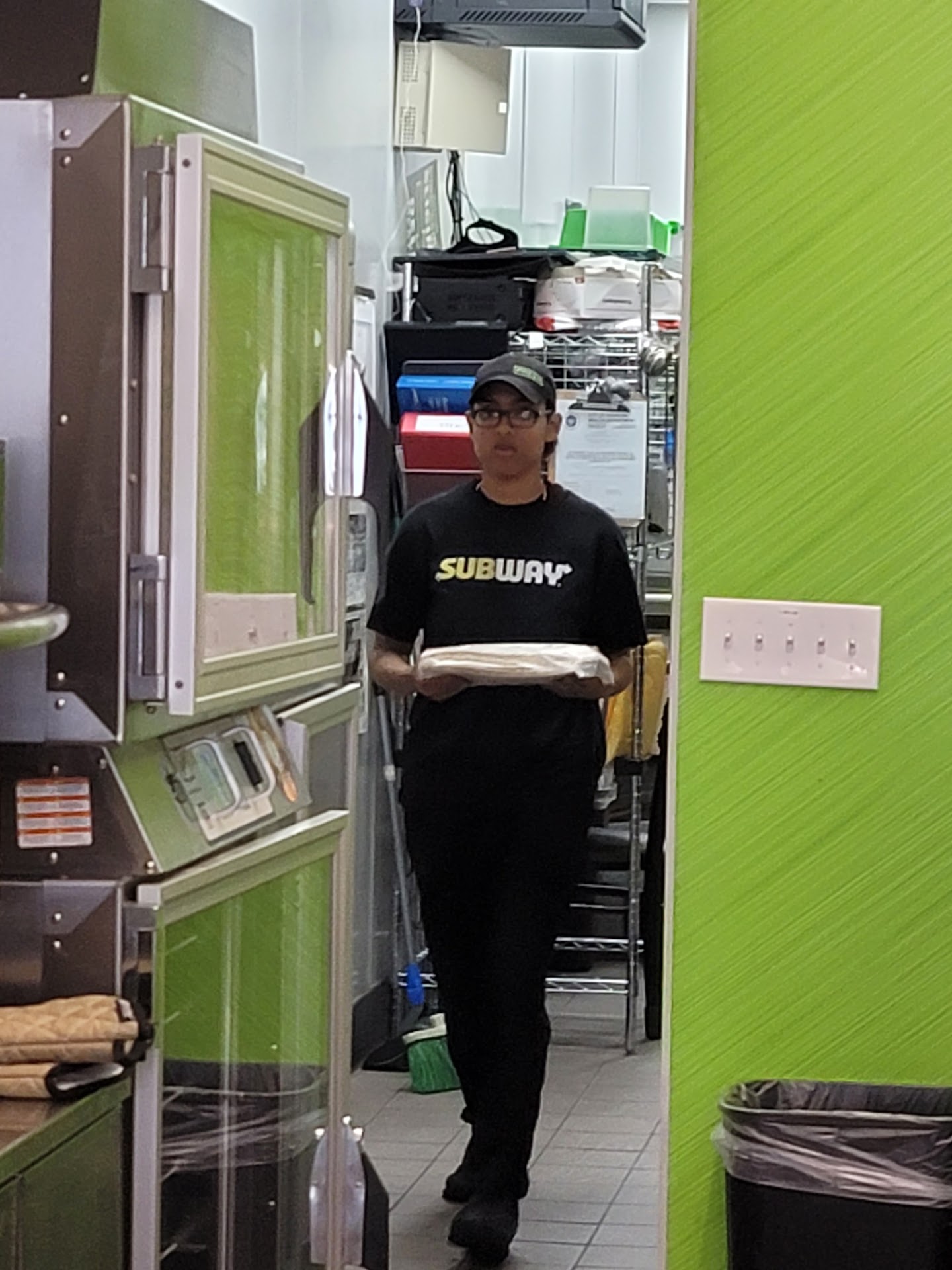 First time going to a Subway in a long time. I wanted some cookies and decided to go there since it was close and I love their white chocolate raspberry cookies. I walked in to the register, one woman was there but seemed preoccupied however, said nothing. While I was scanning the menu looking for the price for the cookies she left and went to the back and never returned, but still said nothing. Another woman was standing at the end of the counter where you order sandwiches the entire time, she said nothing. I thought maybe she was about to do an online order. Anyway, I stood there for about 7 mins, while noone said anything, and the lady at the end just standing there. Another customer in came in and passed me to order his sandwich. Still patiently standing at the register thinking surely she's going to ask what can she get me before ringing up the sandwich. Still nothing, and proceeds to ring up the guy. I had to ask if I was invisible. I asked the customer and the lady. She says, no ma'am. I just walked out and decided to leave a review. Came to the review section, and see a large picture of her in the most recent comment (below mine) by a different customer who found their experience unsatisfactory as well. Too bad, the shop smelled really good, I said to myself I would start eatting at Subway again because of how it smelled. If I hadn't already picked something up elsewhere, i would have ordered a sandwich. Unfortunately, this has completely turned me off from the company all together. The last few times I tried their sandwiches, i they tasted different and I didn't like the new taste but I was willing to try again. I'll spend my hard earned money elsewhere. 8/26/24...