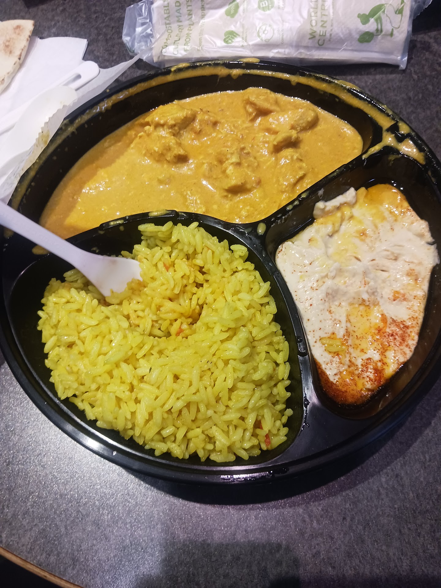 Satisfied with the preliminary test, I request a spicy chicken shawarma. I ask to customize it. They graciously oblige.