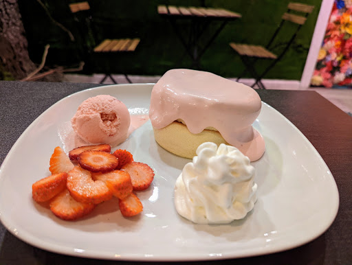 The Souffle Pancake was extremely soft, fluffy, and jiggly. Not just good looking, the taste was extremely good. The Matcha Tiramisu was creatively served in a wood box. It many rich layers topped with a good quality matcha on top. The drinks were just as good. The Coconut Cream coffee had nice flakes of coconut mixed in a thick cream coffee foam. The Mango Milk Tea had a nice mix of the natural tasting mango and milk tea. I will definitely have to come back to try their other menu items when visiting...
